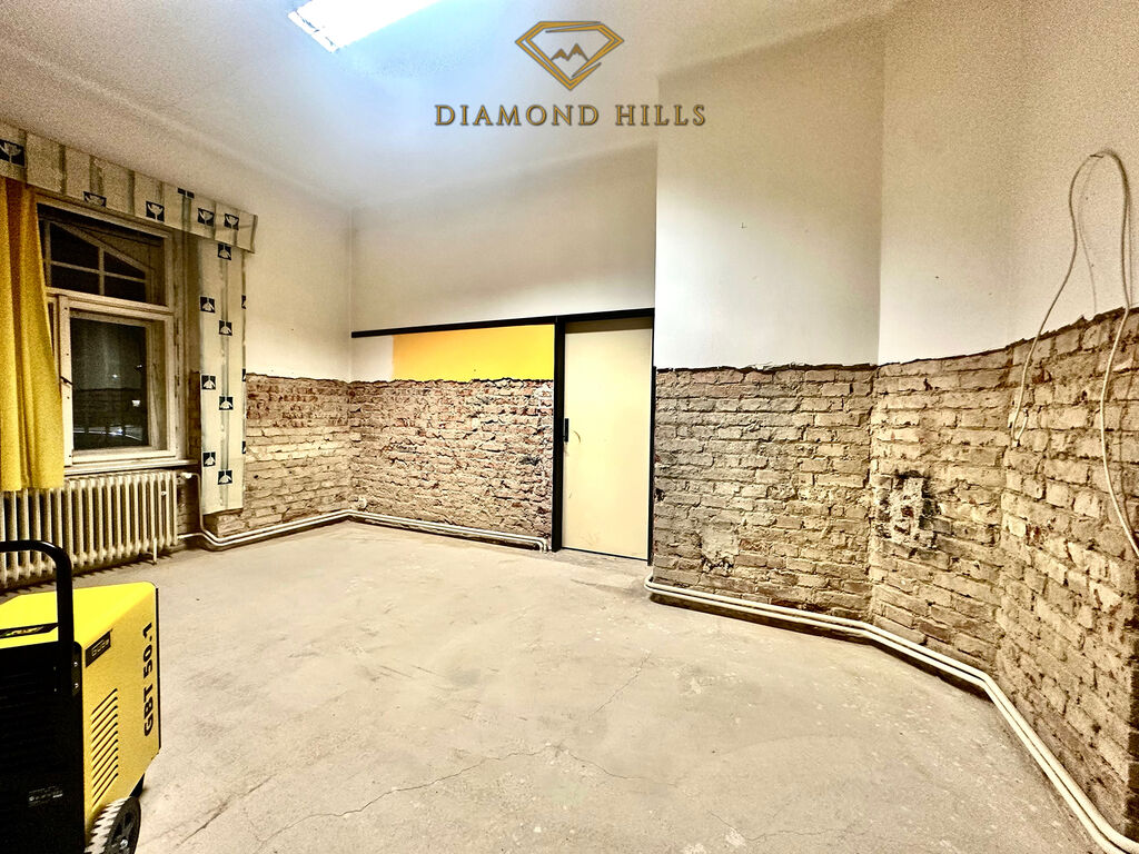 Jedná se o prostor v přízemí činžovního domu, který bude během několika měsíců rekolaudován na dvě samostatné bytové jednotky. Dispozice tomu naprosto odpovídá – k dispozici jsou dvě oddělené části se samostatnými vstupy a přípravou pro sanitu. Lze tak realizovat dvě plnohodnotné bytové jednotky, případně jednu část využít na bydlení a druhou jako ateliér, kancelář nebo jiný komerční prostor.