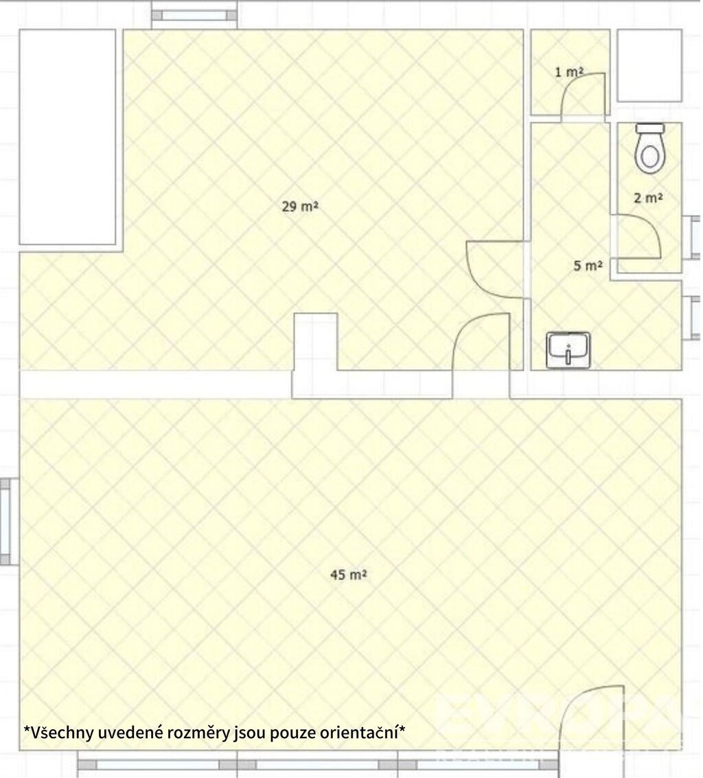 Prostor je díky velkým oknům krásně prosvětlený po celý den a působí velmi útulně. V současnosti jsou zde vystaveny obrazy, které budou před předáním nájemci odstraněny. Prostor tak bude připraven k okamžitému využití dle vašich představ.