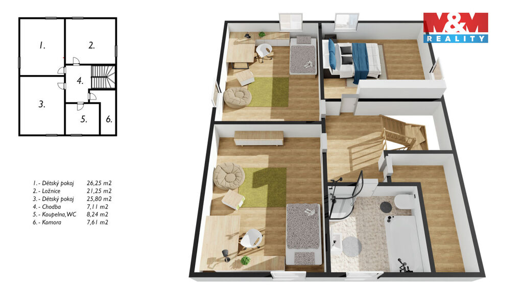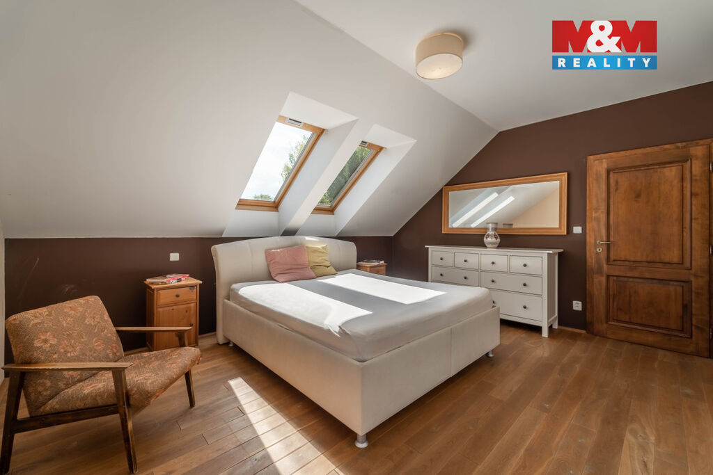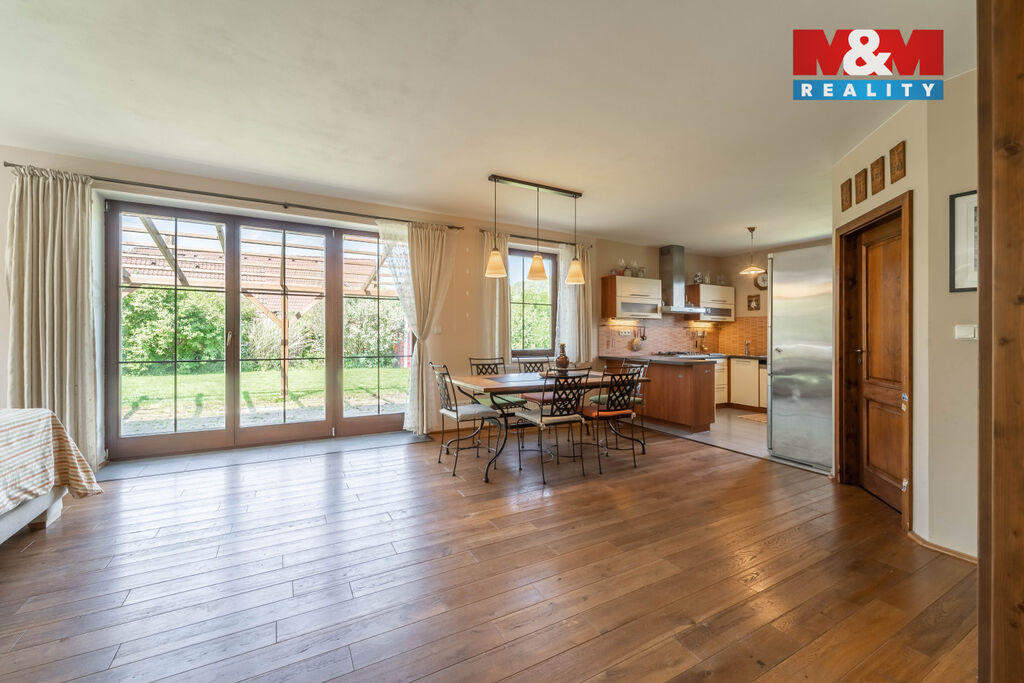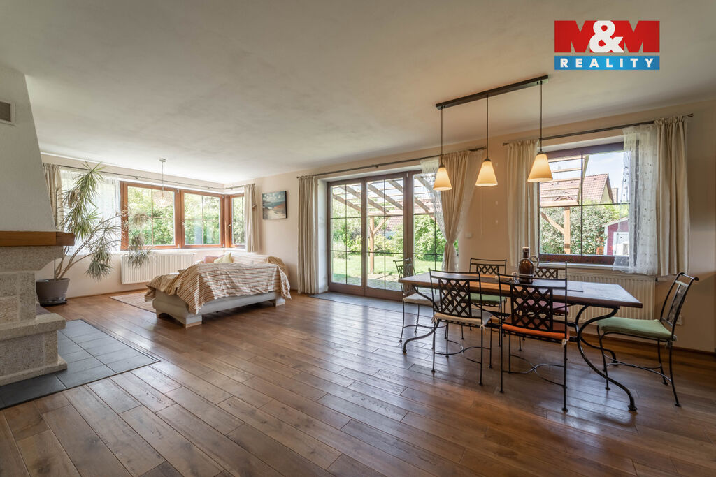 Nová snížená cena. Exkluzivně pro Vás k prodeji výjimečný rodinný dům v klidné části obce Mořina na Berounsku, jen pár minut od okraje Prahy. Tento samostatně stojící dům, situovaný v nádherné lokalitě, je ideální pro vícegenerační bydlení či klidný rodinný život. Nemovitost se rozkládá na pozemku o velikosti 1302 m² a nabízí prostornou užitnou plochu 240 m². Dům má dvě nadzemní podlaží a jedno podzemní, celkem 6 místností, včetně průchozí šatny a komory. Velké a světlé pokoje poskytují jedinečný výhled do okolní malebné krajiny. K dispozici je také sklep a prostorná garáž s dílnou. Obývací pokoj má přímý vstup na zahradu o rozloze více než 1000 m². V obci a blízkém okolí je dostupná veškerá občanská vybavenost. Skvělá investice díky velikosti pozemku a unikátní poloze. Využijte jedinečnou šanci bydlet v přírodě, klidu a přesto na dosah všeho, co potřebujete k modernímu bydlení. Velmi rádi také pomůžeme s financováním od našeho specialisty. Těšíme se na Vás v obci Mořina na Berounsku.