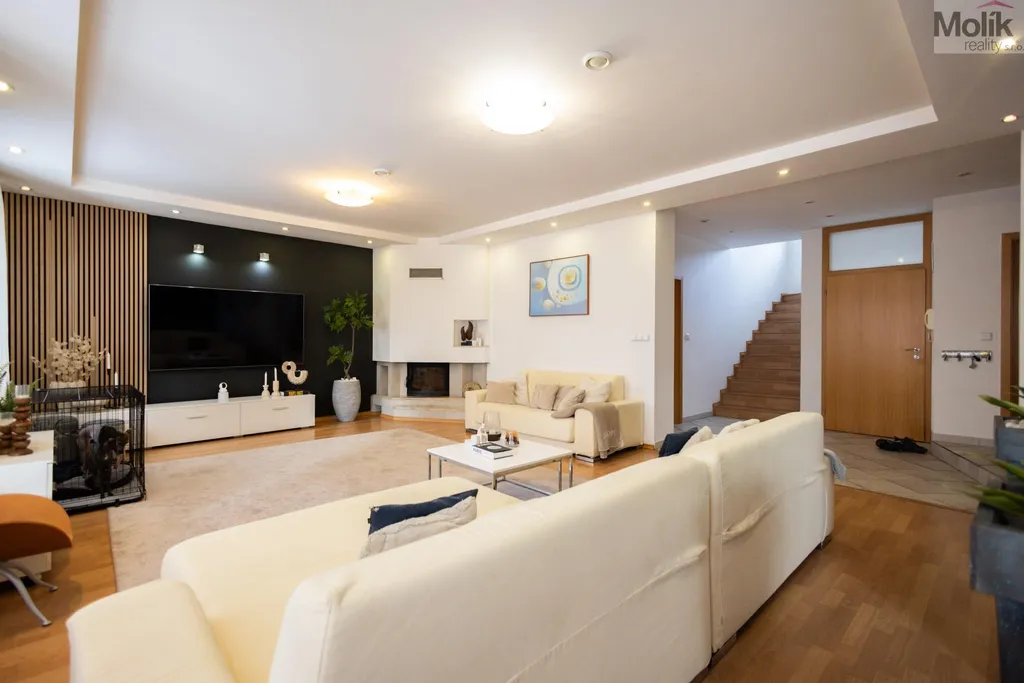 Nabízí tři samostatné pokoje, kuchyň, koupelnu s vanou a vířivkou, saunu a velkou technickou místnost, ve které je pračka, sušička, žehlící prkno i věšák na prádlo. Celý byt působí velmi útulně, je světlý, moderní a prakticky řešený.