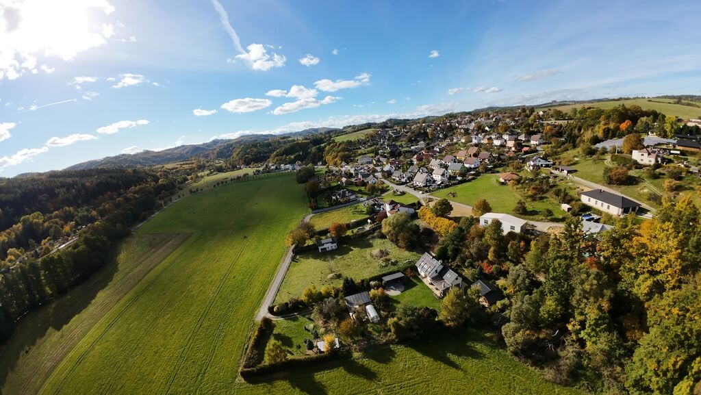 Pozemek je rovinatý, slunný a nachází se na velmi klidném místě s krásným výhledem do okolní krajiny.