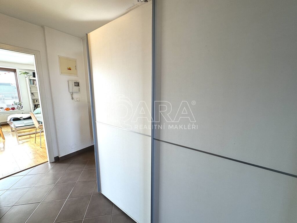 Jednotka se nachází v 6. NP a na patře jsou pouze jedni sousedé. Vstupní chodba s úložnými prostory v podobě posuvné skříně. Obývací pokoj s plně vybaveným kuchyňským koutem a vstupem na terasu. Sedačka, venkovní posezení, jídelní stůl se židlemi součástí vybavení.