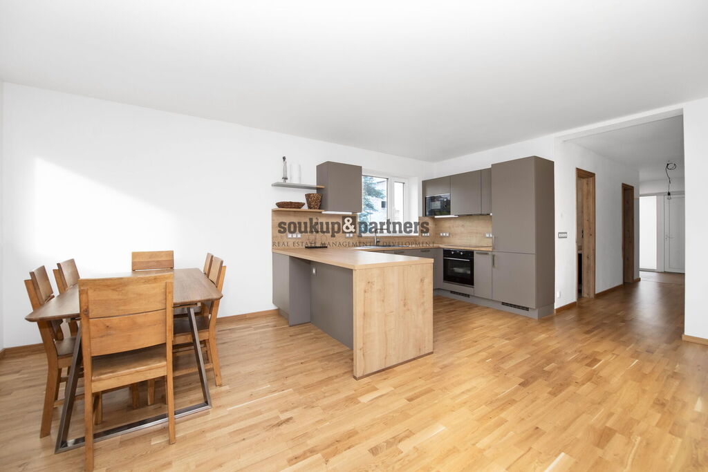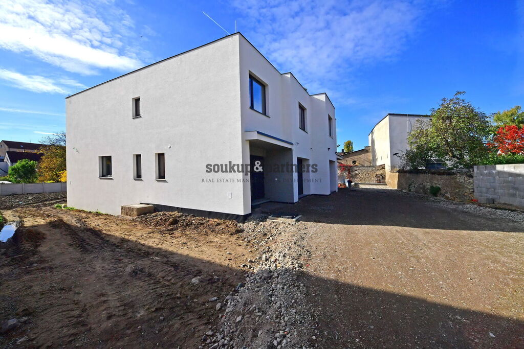 Dům je ve vysokém standardu - dřevěné podlahy, kvalitní interiérové dveře s designovým kováním, kuchyně SIKO vč. vestavěných spotřebičů Electrolux (indukční varná deska, el. trouba, mikrovlná trouba, myčka, lednice s mrazákem), značková sanita, vodovodní baterie Hansgrohe, velkoformátové obklady a dlažba. Díky velkoplošným oknům a orientaci na JIH je dům nadstandardně světlý. Vytápění je po celém domě podlahové teplovodní. IS - elektro, vlastní studna na pozemku, obecní vodovod a odpad sveden do jímky. Je vybudovaná příprava na připojení na kanalizaci a je podaná žádost o připojení.
