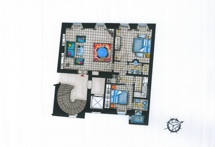 • dvě koupelny – jedna s vanou, druhá se sprchovým koutem, obě s bidetem a toaletou.
