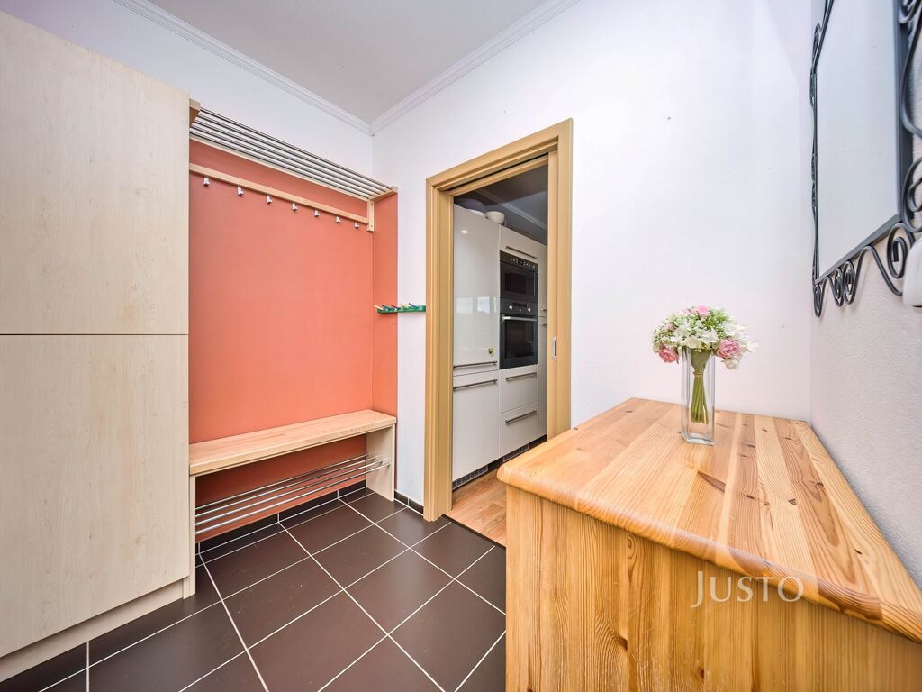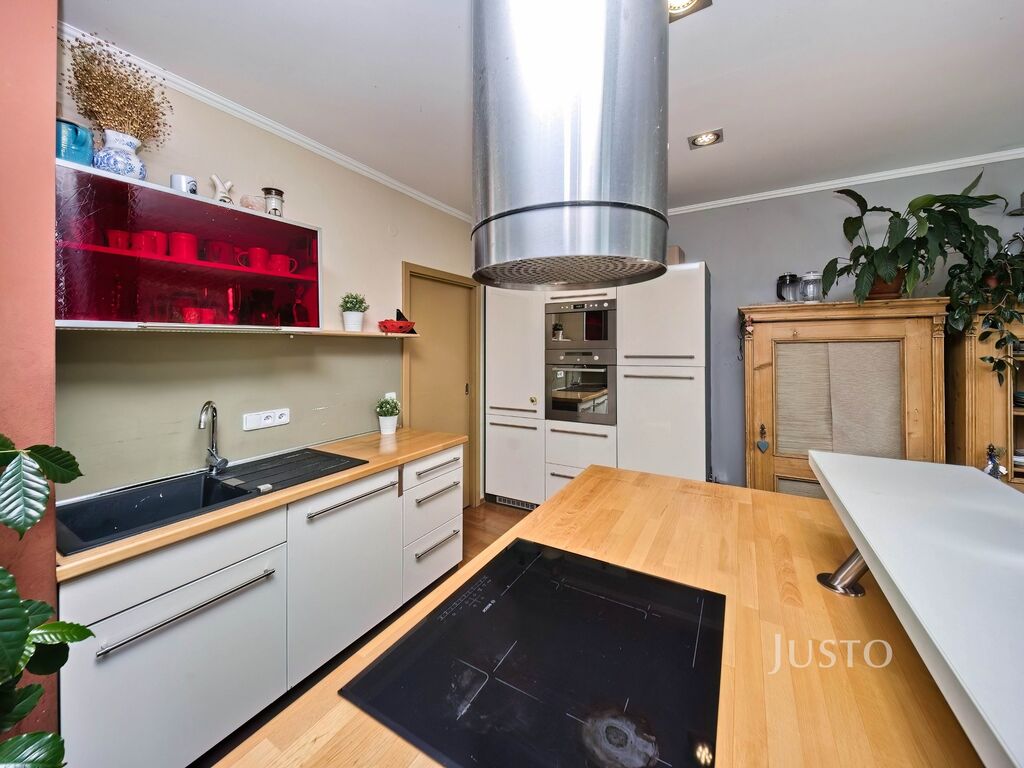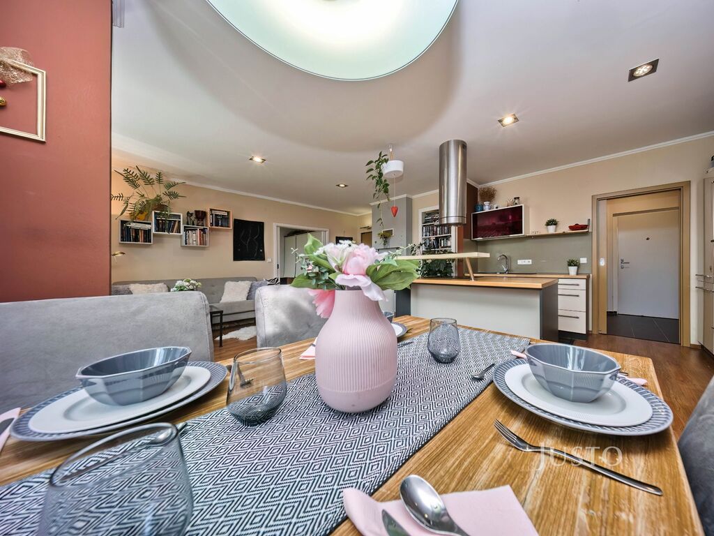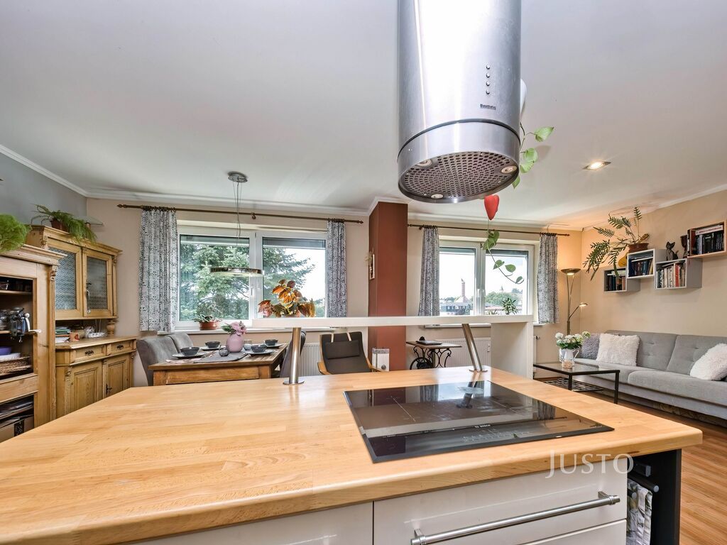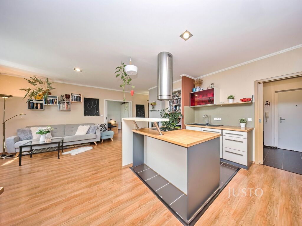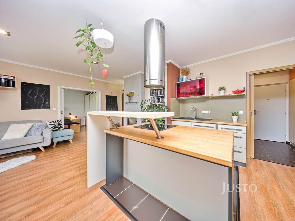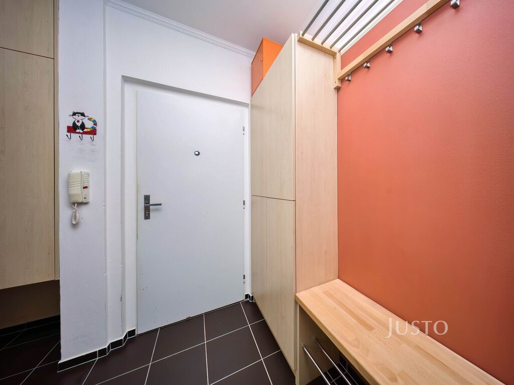 V bytě je předsíň s vestavěnými skříněmi a vstupem přímo do obývacího pokoje s kuchyňským koutem. Kuchyňský kout je z roku 2011, kompletně nově vybudovaný a má samostatný vařidlový ostrůvek. V ostrůvku je zabudovaná indukční varná deska, desingová digestoř s odtahem přímo do komínu a úložný prostor pro využití u vaření. Ze strany od jídelny lze ostrůvek využít jako bar, třeba pro návštěvy a být tak v kontaktu s přáteli i v době, kdy jim chystáte pohoštění.