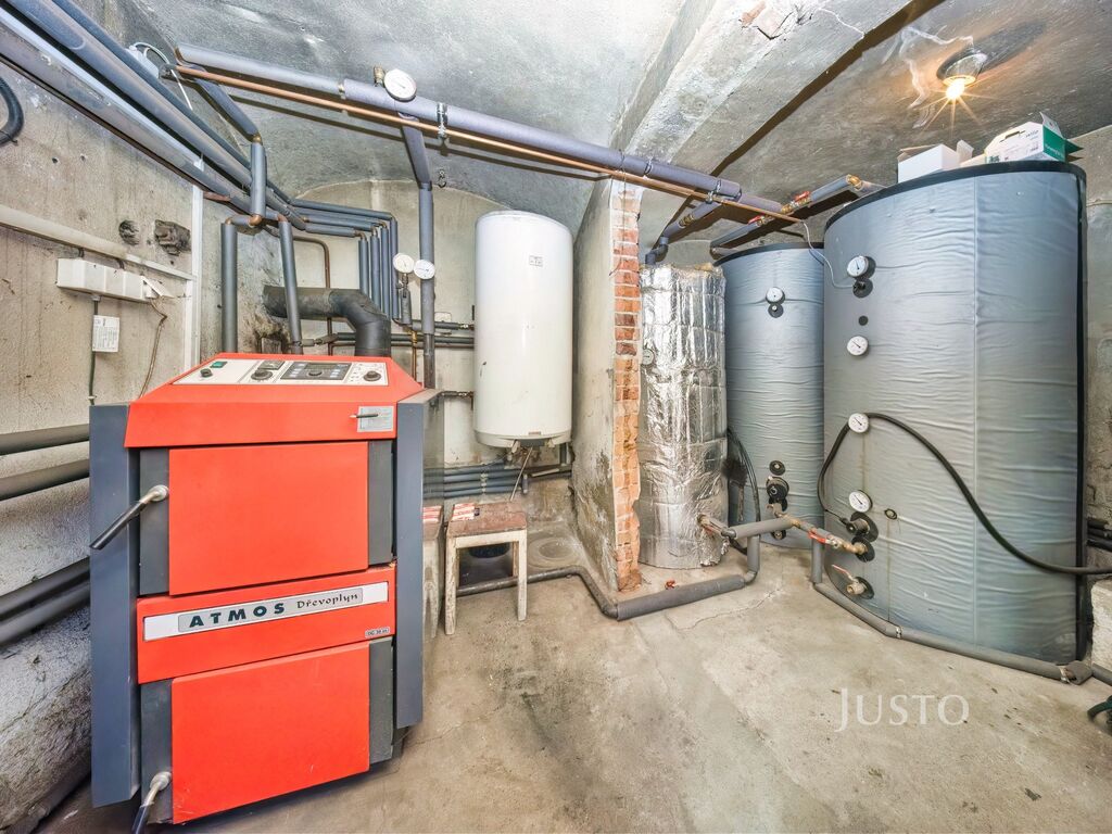 Dům má více možností vytápění, podle aktuální volby majitele. Jedno z nich je vytápění pomocí kotle na TP na dřevoplyn s akumulačnímu nádržemi, další možnost je využití plynového kotle. Ohřev teplé vody je řešen kombinovaným bojlerem( kotel na tuhá paliva nebo elektřina) nebo plynovým kotlem. Vše řídí termostat v domě a lze kombinovat podle potřeby.