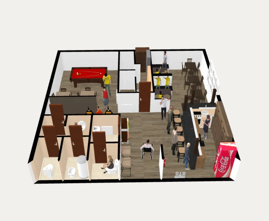• Zázemí pro bar, personální část, dámské a pánské toalety