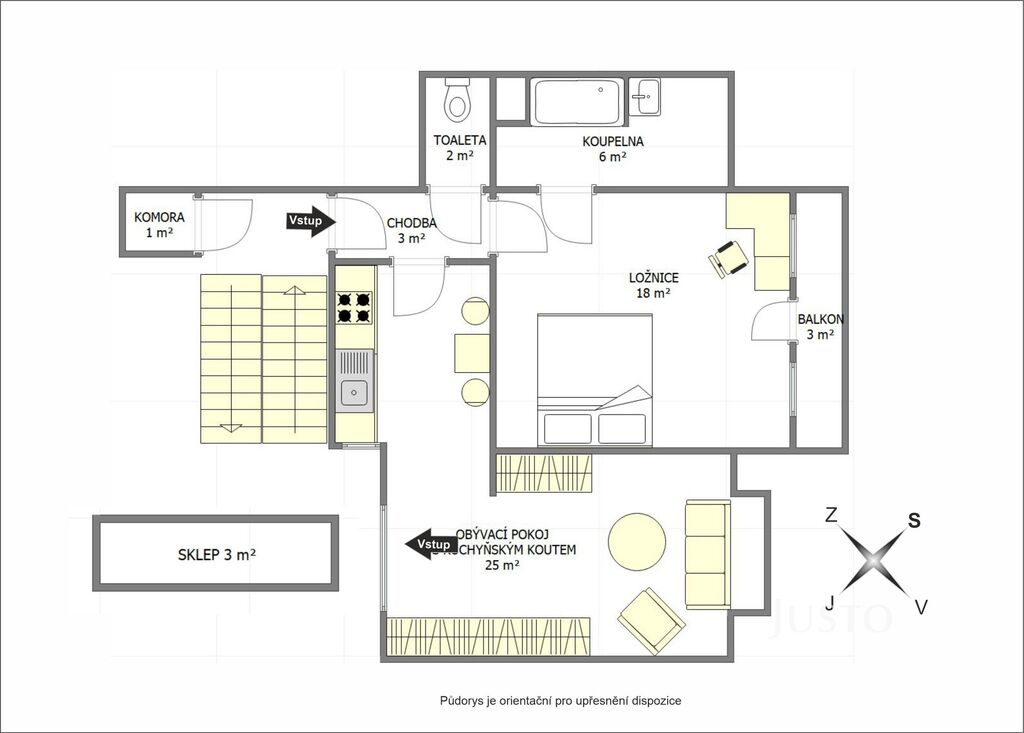 V zastoupení majitele Vám nabízíme k pronájmu byt o dispozicích 2+1 s balkónem a klasickým sklepem.