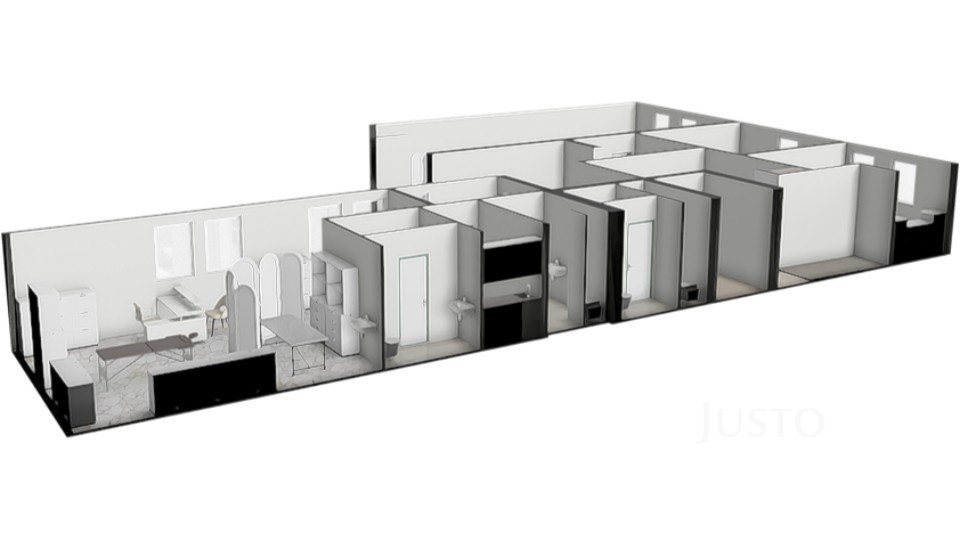 - Flexibilní dispozice vhodné pro zdravotnická zařízení a prostory budou dokončeny na míru dle domluvy –