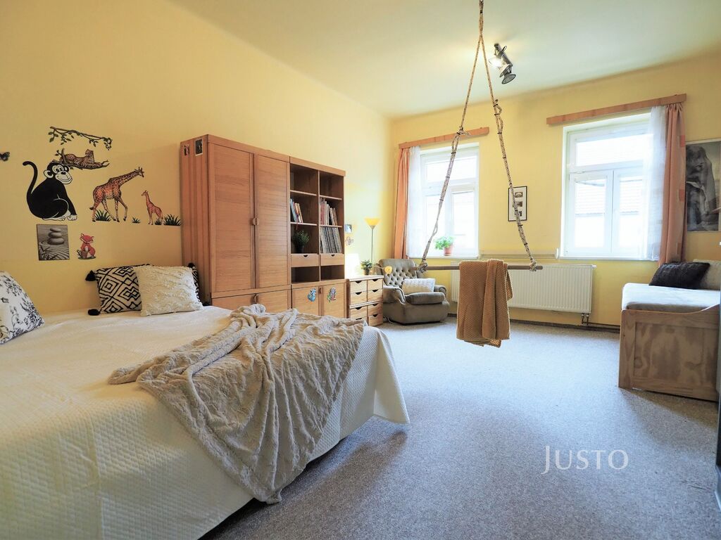 K bytu náleží volný půdní prostor, který nabízí možnost půdní vestavby. Díky tomu lze byt rozšířit například o mezonetové patro či další pokoj a zvýšit tak komfort i hodnotu nemovitosti. Dále podíl na společné zahradě, čistý, suchý sklep. Na dvorku je k bytu dřevník a budova bývalé prádelny, která slouží pro uložení zahradního nářadí.