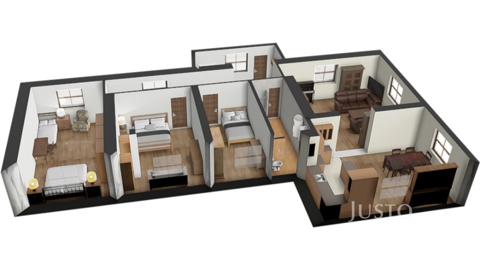 Byt 3+kk se dvěma koupelnami (62 m²)