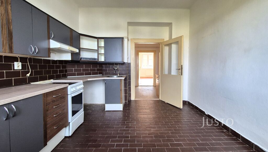 Dispozice bytu - vstupní chodba, kuchyně s komorou o výměře 13 m², prostorný pokoj o výměře 19,42 se vstupem na lodžii směřující do zahrad, pokoj o výměře 19,15 m², koupelna s vanou, samostatné WC.