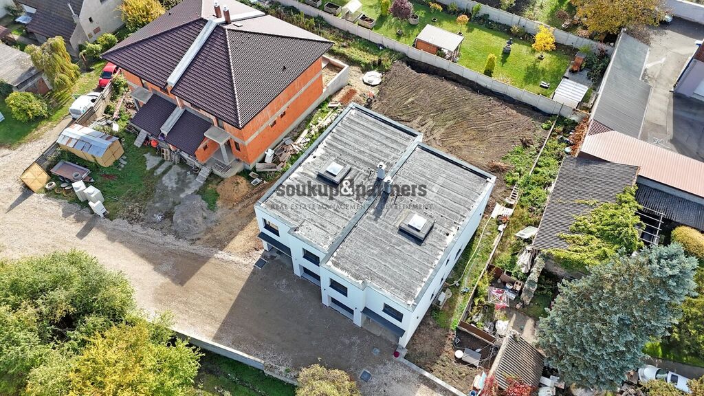 Dům je ve stavu Shell & Core tzn. před položením povrchových materiálů. Díky velkoplošným oknům a orientaci na JIH je dům nadstandardně světlý. Vytápění je po celém domě podlahové teplovodní (již hotovo). IS - elektro, obecní vodovod a odpad sveden do jímky. Je vybudovaná příprava na připojení na kanalizaci a je podaná žádost o připojení.