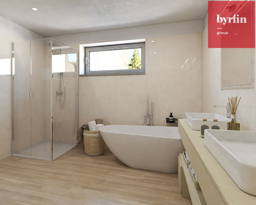 Vysoký standard provedení zahrnuje kvalitní plastová okna s trojsklem a venkovní elektrické žaluzie v každé místnosti, již v základním standardu – tedy v tzv. kolaudačním minimu.