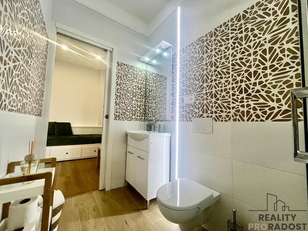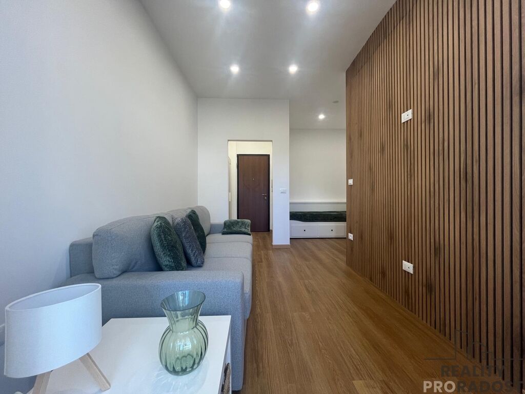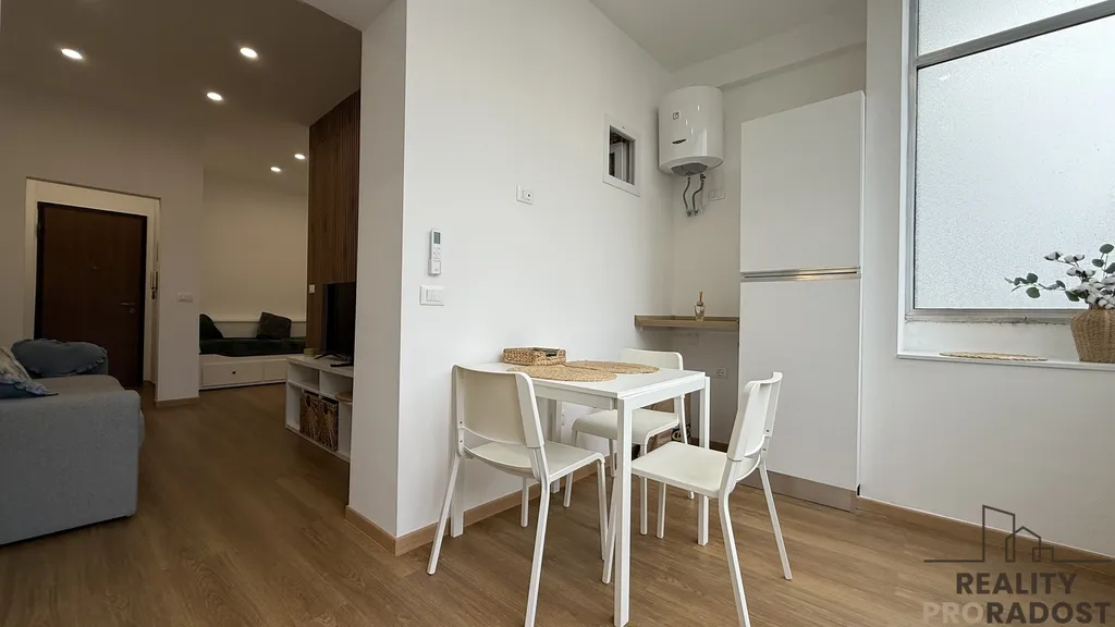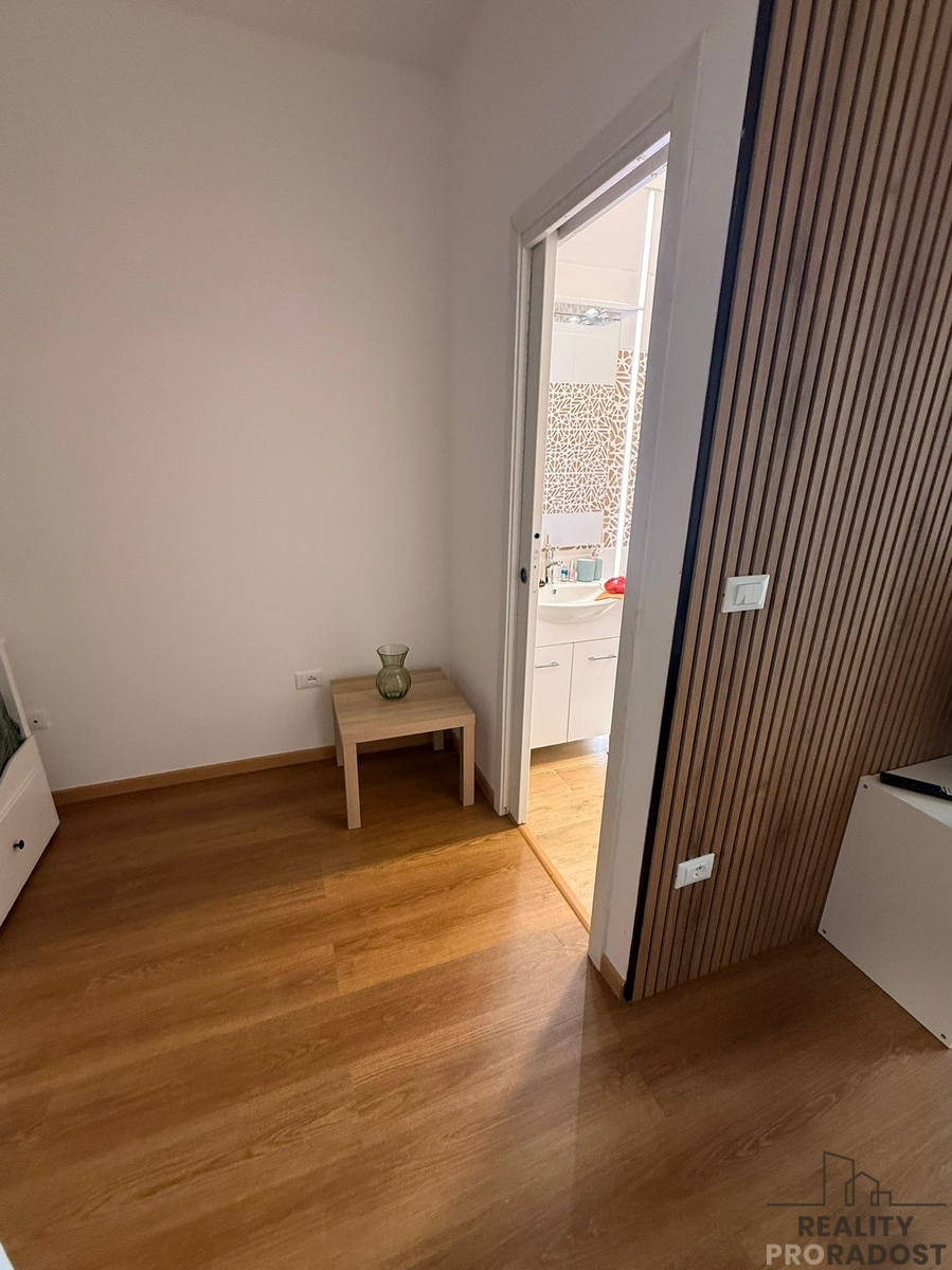 Dispozice bytu je promyšlená do posledního detailu. Zahrnuje útulnou ložnici, moderní koupelnu, světlý obývací pokoj a kuchyň propojenou s lodžií, která je celá zasklená otevíracími okny – vytváří tak jedinečný pocit, že stolujete přímo pod mořským nebem. Prostor působí otevřeně, vzdušně a mimořádně útulně.