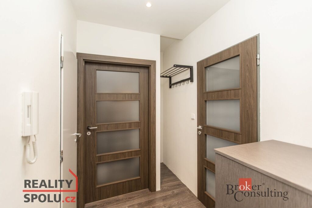 Dispozice: prostorná vstupní chodba, koupelna se sprchovým koutem, umyvadlem a rohovou vanou, samostatné WC, dvě samostatné ložnice, obývací pokoj s kuchyňským koutem, balkón s výhledem na město.