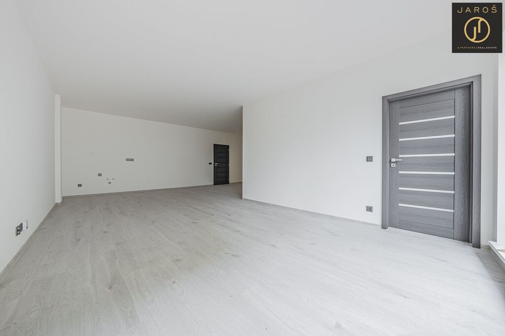 Dispozice bytu je řešena prostornou vstupní chodbou s dostatečným místem pro vestavěnou skříň, odkud je vstup do 42 m2 prostorného obývacího pokoje, kde je vše připraveno k instalaci vlastní kuchyňské linky. Z pokoje je výstup na balkon a přístup do ložnice. Do koupelny se sprchovým koutem a společnou toaletou se vchází ze vstupní chodby.