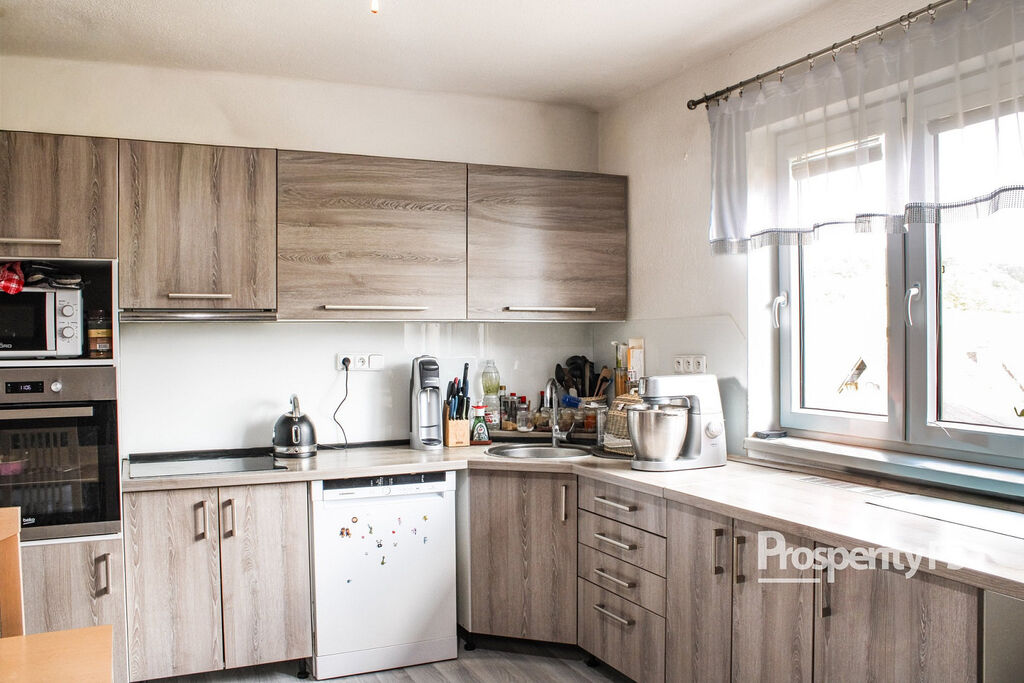 každá s vlastní kuchyní, koupelnou a toaletou. Součástí domu je také přistavěná garáž, další vedlejší stavba využívaná jako sklad