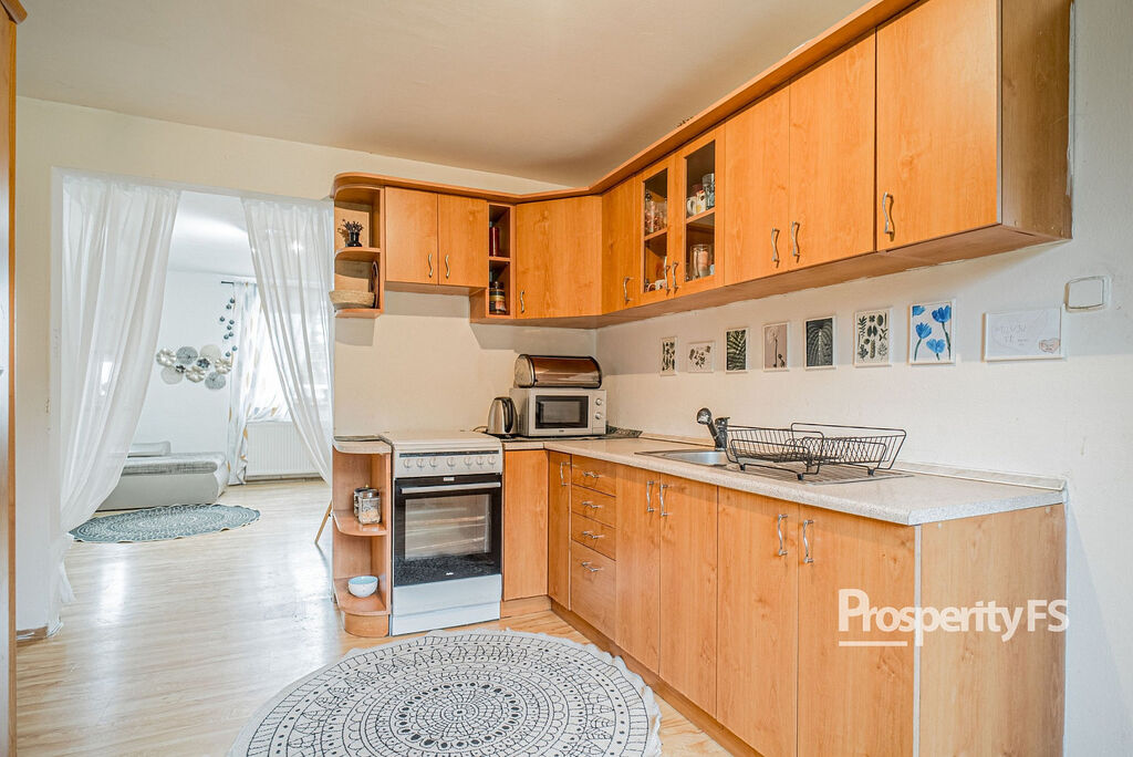 V přízemí naleznete velkou kuchyni, dvě světlé obytné místnosti, připravený prostor pro koupelnu, samostatné WC a technickou místnost. Ve druhém patře se pak rozprostírá taktéž kuchyň, dvě prostorné místnosti a koupelna s rohovou vanou. Dům je kompletně podsklepený s několika dalšími místnostmi, kde je kotel na tuhá paliva, plynový kotel a dvě akumulační nádoby, napojeny na solární ohřev. Nechybí ani půdní prostor, který nabízí prostor pro další využití.