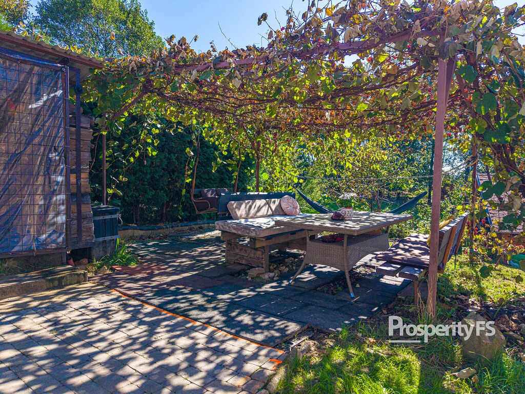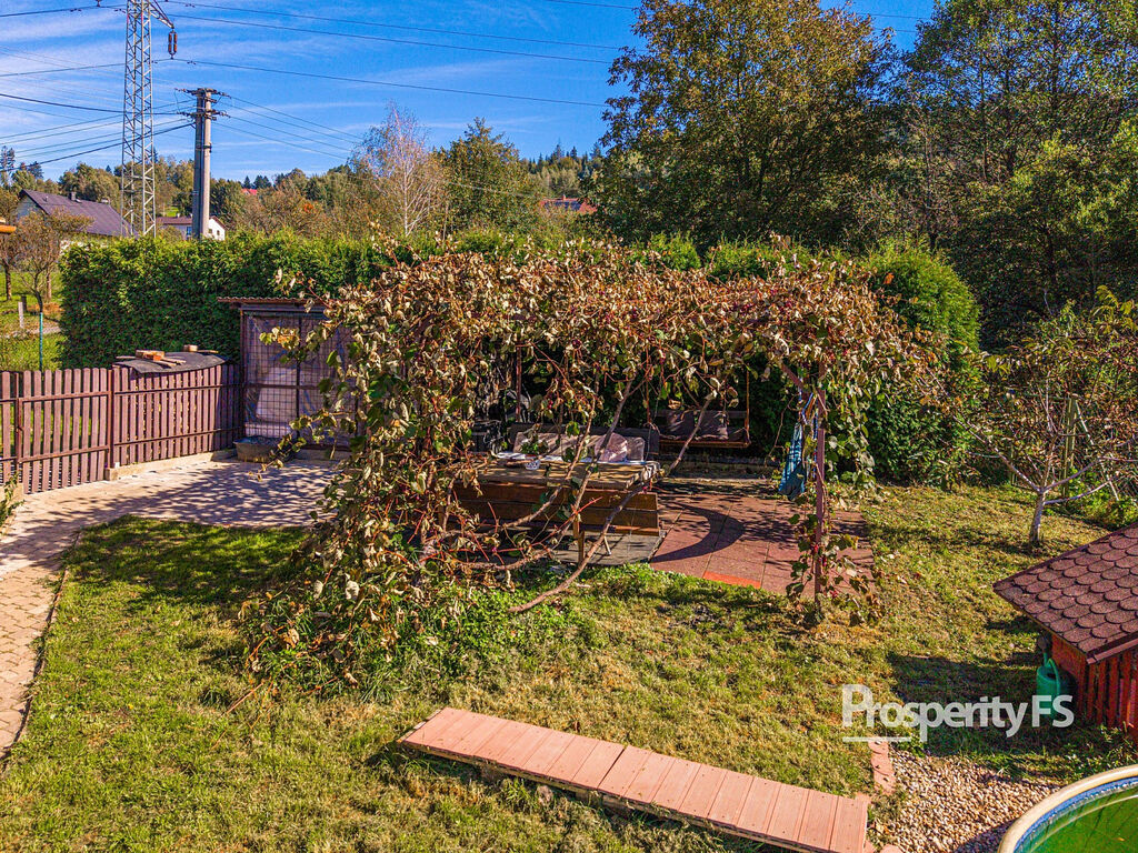 Velký pozemek o rozloze 942 m² poskytuje soukromí a krásný výhled na Beskydy. Součástí je letní altánek s posezením, domácí udírna, zapuštěný bazén, velký kotec pro psy a vzrostlé ovocné stromy a keře. Parkování pro dvě auta je zajištěno přímo na pozemku, který je celé oplocený.