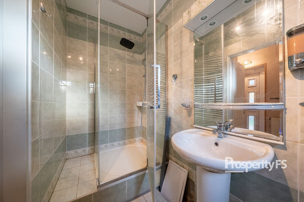 V přízemí vás přivítá prostorný obývací pokoj s krbem, který navazuje na krytou terasu s vířivkou – ideální pro celoroční relax. Kuchyně je samostatná a prakticky řešená. Dále zde najdete koupelnu se sprchovým koutem a vstup do garáže s dílnou.