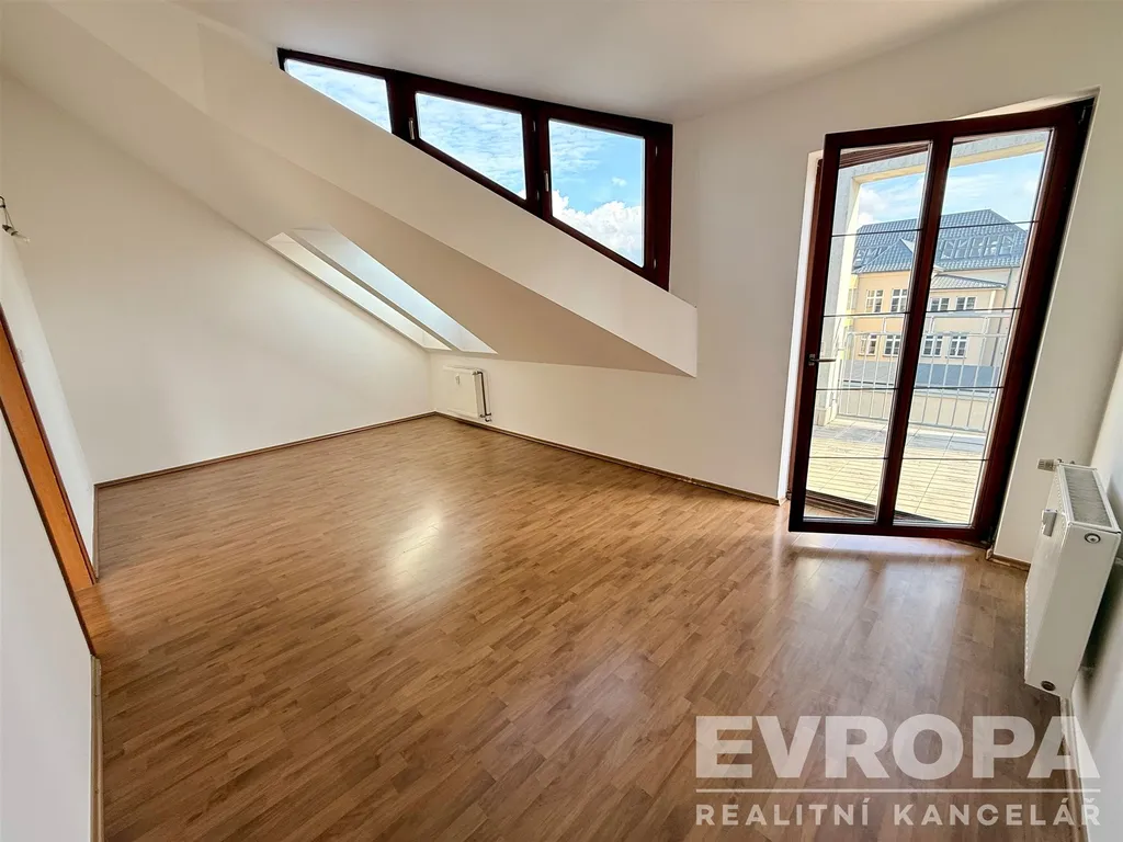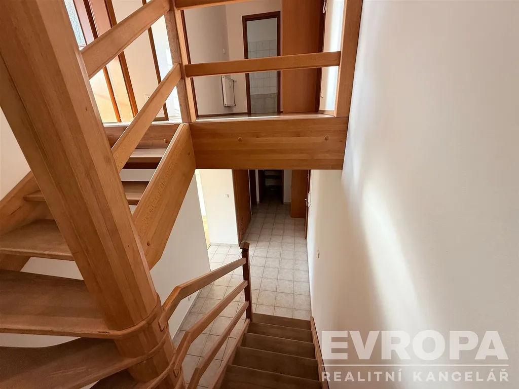 Byt je mezonetový s okny a terasami orientovanými jižním a západním směrem. V první úrovni se nachází samostatná kuchyně s přilehlou obývací místností s dostatečným prostorem pro umístění jídelny, ze které můžete vyjít na terasu – 5,6 m2 a dát si kávu či oběd i tady. Dále je zde umístěna koupelna s vanou a toaletou. Ve vstupní chodbě jsou dvě vestavěné skříně a komora, kterou lze využít i jako šatnu. Po dřevěném schodišti se dostane do podkroví, kde je umístěna další koupelna s vanou a toaletou. Dále se zde nachází čtyři obytné místnosti. Ze dvou ložnic máte výstup na samostatné terasy (5,8 m2 a 5,9 m2), které nabízí soukromí a nádherné výhledy do okolí. Největší podkrovní místnost 104 m2 plná střešních oken orientovaných jižním směrem nabízí různorodé využití, vytvoření ateliéru či jejího rozdělení na více místností. Součástí bytu jsou také dvě garážová stání v podzemní garáži domu, což je v centru města obrovskou výhodou.