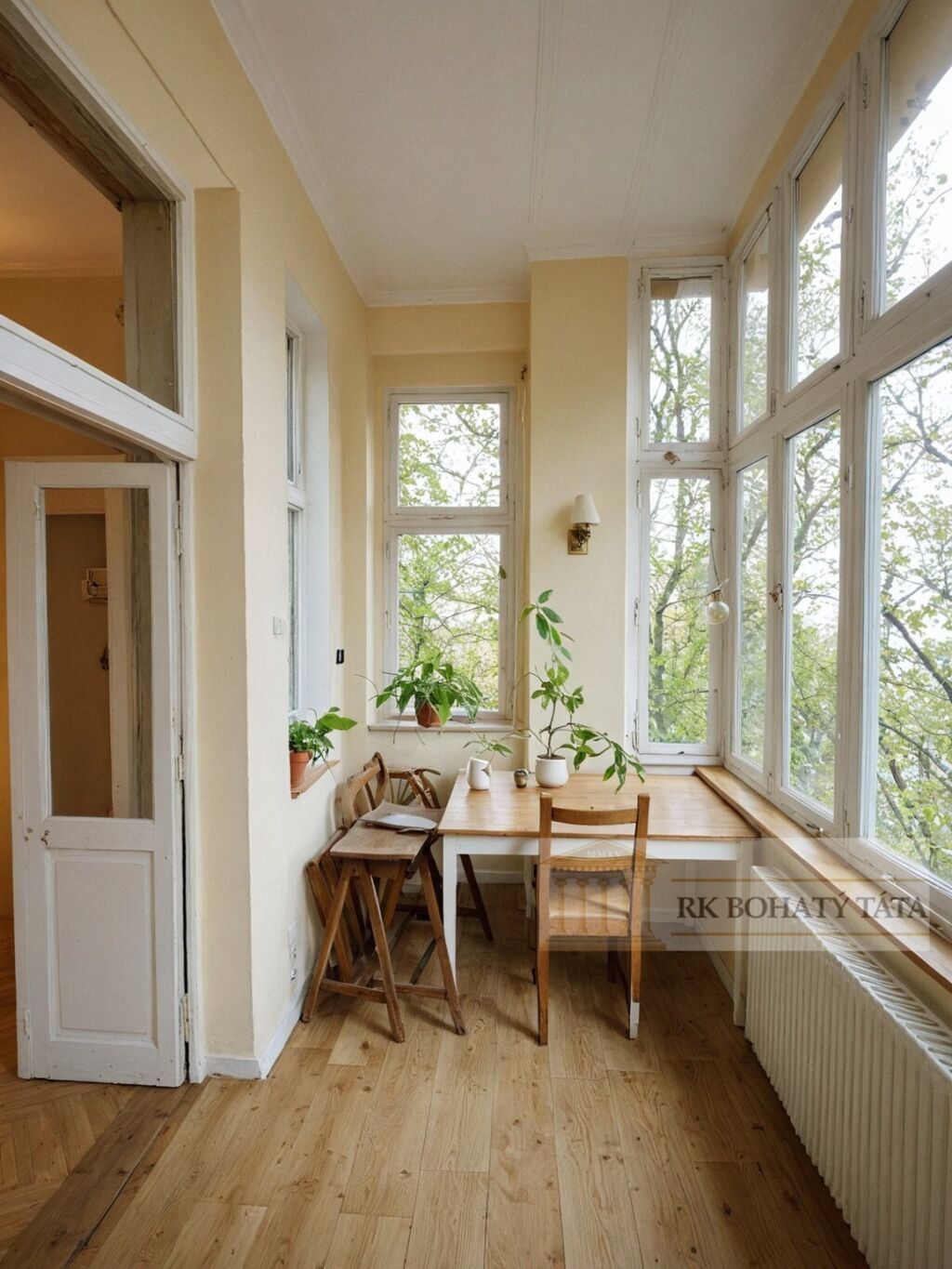 Jedinečný byt 2 + kk s velice příjemnou atmosférou a se zimní zahradou o rozloze 70 m2 se nachází v 1. patře cihlového domu bez výtahu v klidné a výjimečné lokalitě na pomezí Prahy 1, 6 a 7 v blízkosti Letenských sadů. Jedná se o tiché a velmi příjemné bydlení s orientací do vnitrobloku. Dispozici tohoto příjemného bytu tvoří opravdu rozlehlými pokoji z nichž v jednom z nich je pak kuchyňská část, obývací pokoj se vstupem do úžasné prosklené zimní zahrady, koupelna s vanou, toaleta, větší společná chodba. Byt se bude pronajímat převážně nezařízen. V blízkosti je hodně zeleně, krátce je to na zastávku či metro. Byt mohu doporučit pro výbornou lokalitu, pro kouzlo bytu a zajímavou zimní zahradu. V případě zájmu, nebo prohlídky, kontaktujte prosím makléře.