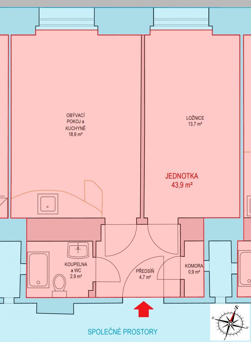 K bytu náleží zděná sklepní kóje o výměře 2,1 m2 ve společných částech v suterénu domu. Plocha sklepní kóje se nezapočítává do podlahové plochy bytu)