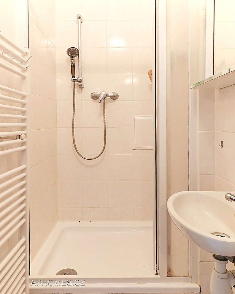 Součástí vybavení zůstává kuchyňská linka, sporák se sklokeramickou varnou deskou, elektrickou troubou a digestoří.