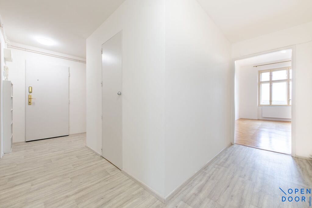 Byt nabízíme jako částečně vybavený. Všechny místnosti bytu jsou přístupné z prostorné haly - dva pokoje se společným balkonem mají nádherný výhled do Havlíčkových sadů a další pokoj a kuchyň s menším balkonem směřují do klidného vnitrobloku. Kuchyně je vybavena moderní kuchyňskou linkou se spotřebiči (vestavěná myčka nádobí, elektrický sporák s varnou deskou a troubou, volně stojící lednice s mrazákem), součástí kuchyně je malá komora. Koupelna je s vanou, WC samostatně. Z haly je dále přístupná velká šatna a další komora. Na podlahách pokojů jsou původní renovované parkety. Topení a ohřev vody plynovým kotlem umístěným v koupelně.