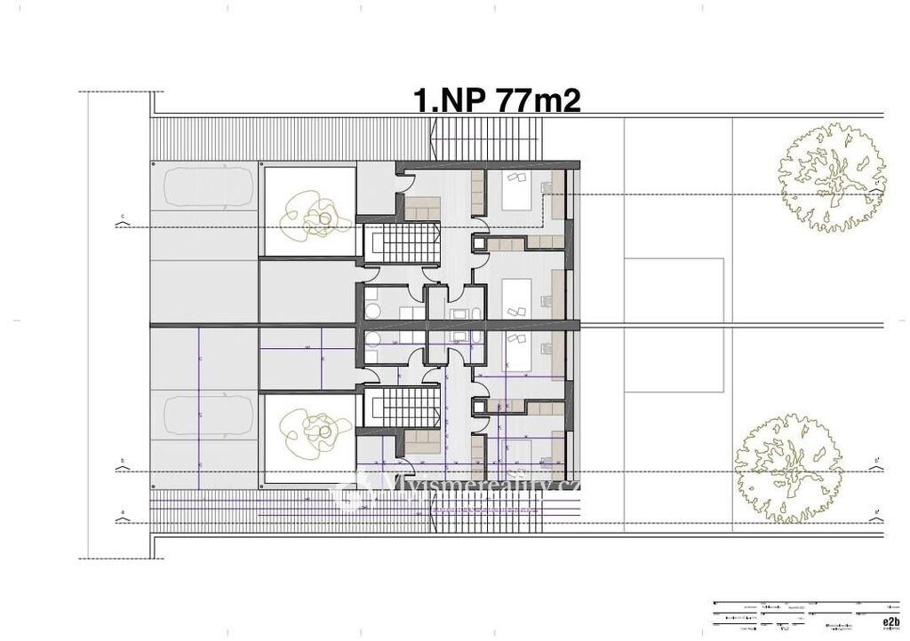Dva prostorné pokoje v patře s výhledem do zahrady a vlastní společnou koupelnou, tak dotváří detailně laděnou dispozici této moderní stavby.