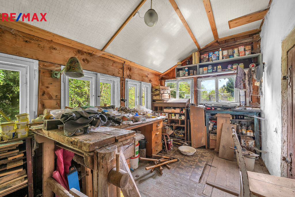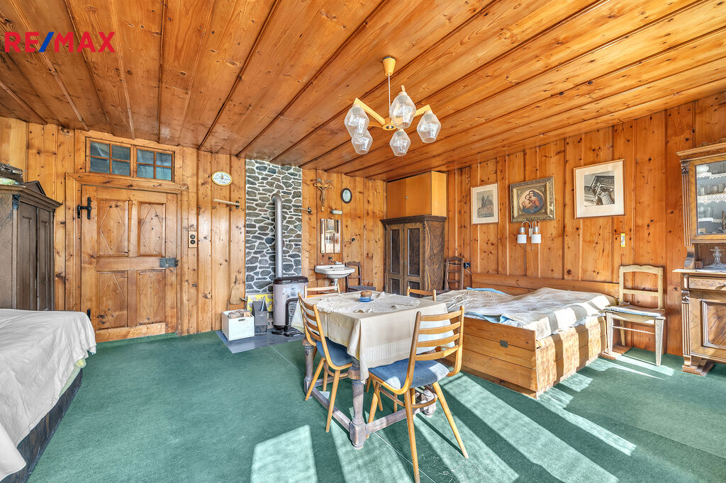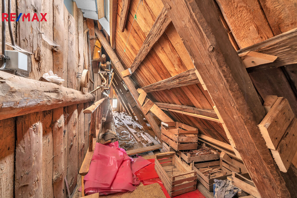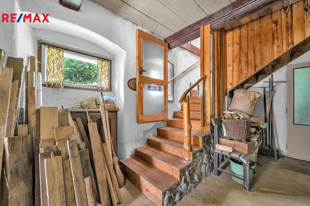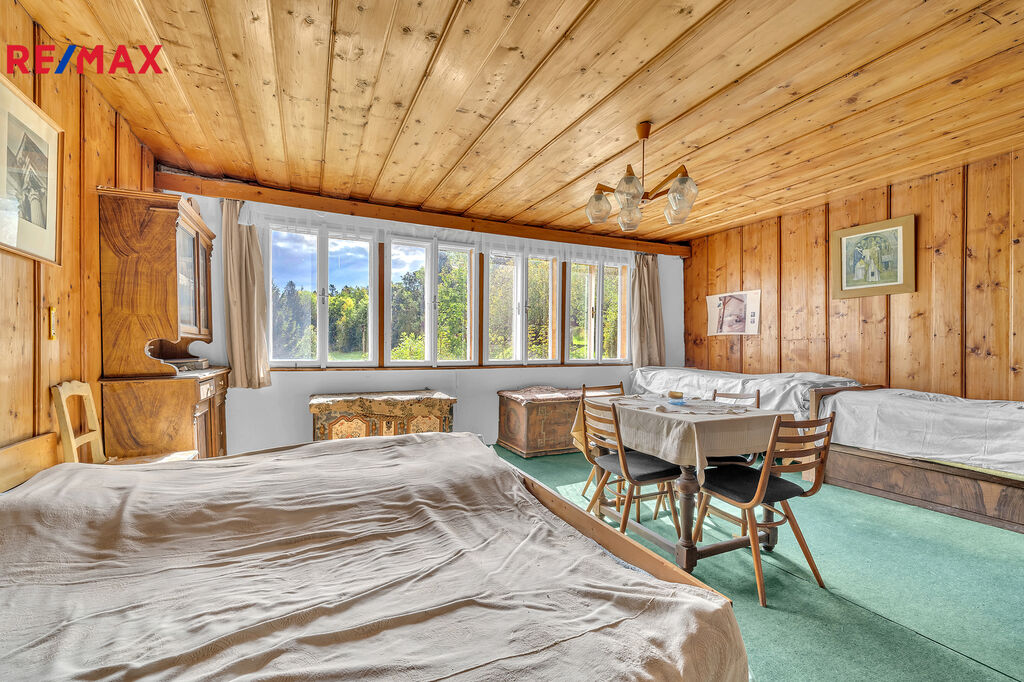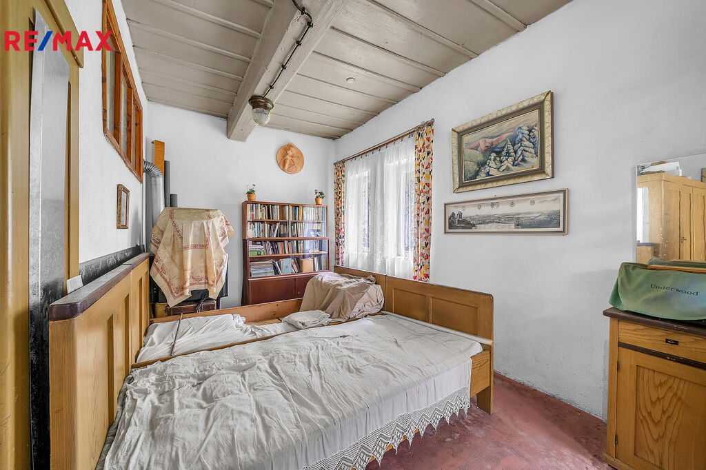 V podkroví se nachází velká velmi světlá obytná místnost a další 3 menší pokojíčky. Chalupa je podsklepená.