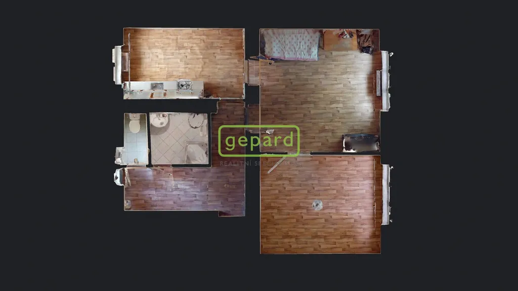 Jedná se o družstevní vlastnictví (Podkrušnohorské bytové družstvo) a je určený k rekonstrukci. Nachází se ve třetím nadzemním podlaží s plochou bytu zhruba 53 m. Fixní měsíční náklady na domácnost v současnosti činí dle dostupných informací 3300,- Kč měsíčně pro jednu osobu. Na některých fotografiích je použita vizualizace možného vybavení (kuchyňská linka a prostor kuchyně, obývací místnost a částečně viditelná ložnice).