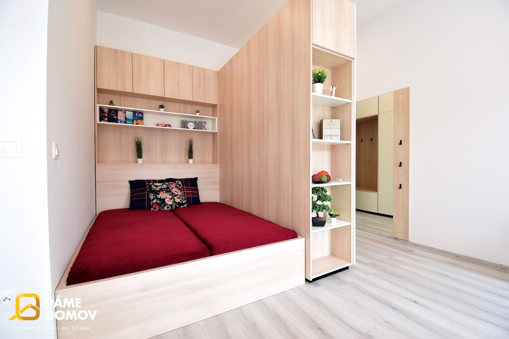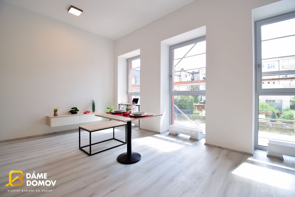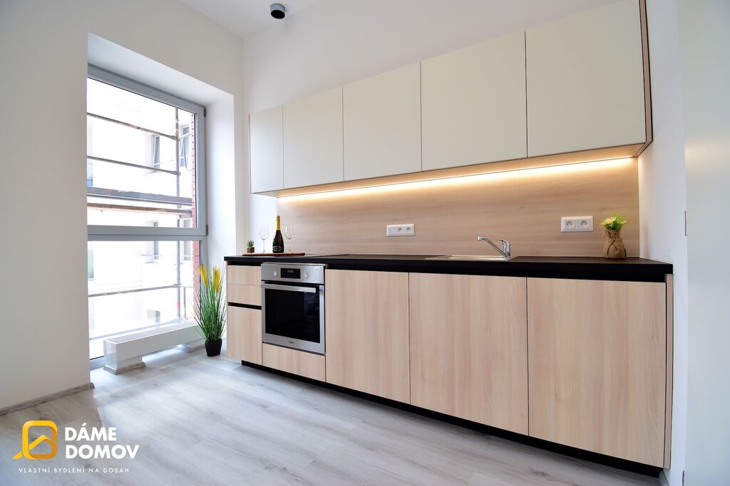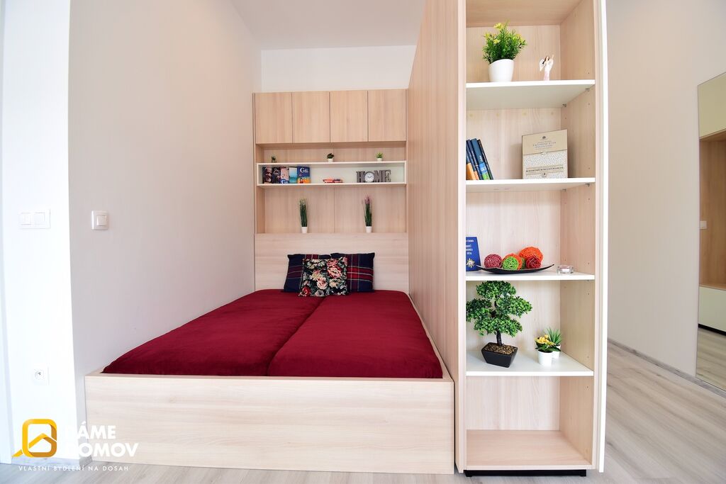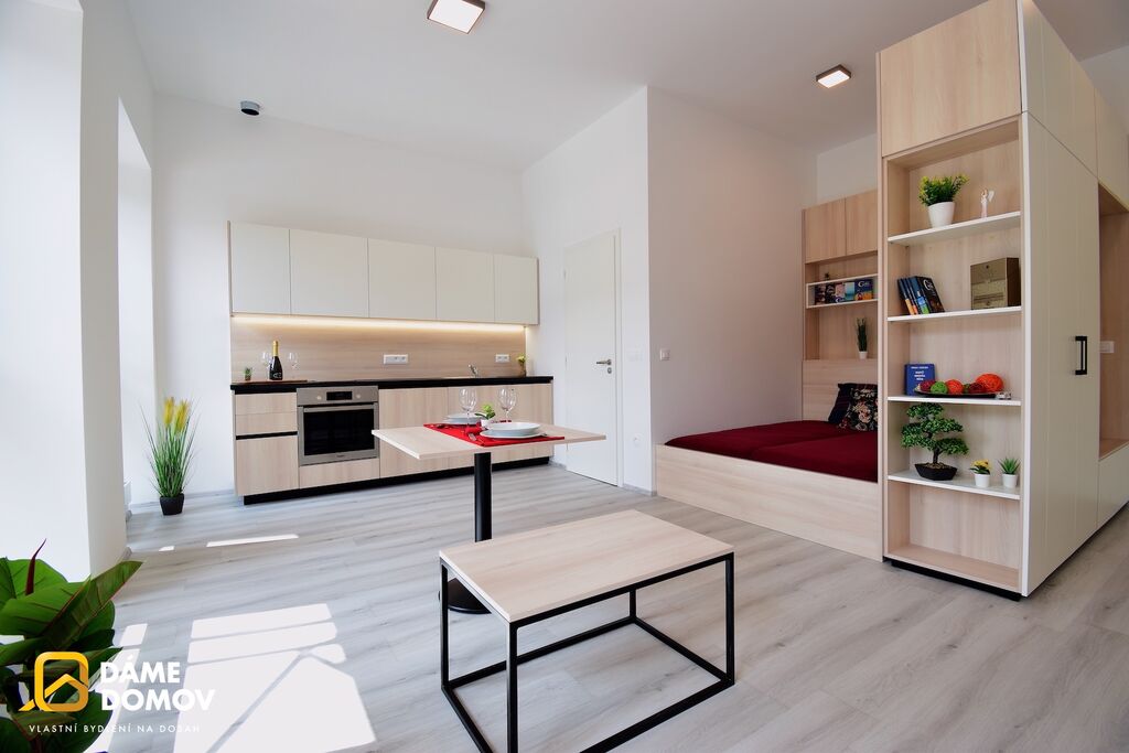Byt je zařízen kvalitním nábytkem na míru s dostatkem úložných prostor. Kuchyň je vybavena vestavnou varnou deskou, vestavnou troubou, vestavnou ledničkou, nerezovým dřezem. Dále je v pokoji dvojpostel s matracemi, sestava skříní, počítačový stůl, jídelní stůl a konferenční stůl, závěsná skříňka pod TV. V chodbě sestava skříní a odkládací stěna se zrcadlem. Krásná koupelna se sprchovým koutem. Možnost odkoupit od předešlého nájemce pračku.