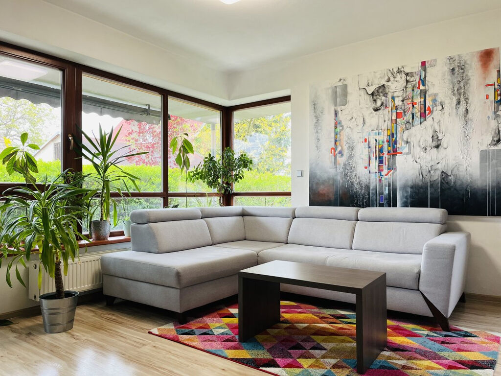 K dlouhodobému podnájmu nabízíme krásný a prosluněný byt o velikosti 3kk o celkové výměře 90m2 v prvním patře cihlového domu. K bytu náleží terasa, na kterou se dostaneme z obývacího pokoje, garážové stání a také stání u domu. V této nízké zástavbě najdeme výtah, dětskou herničku, posilovnu a venkovní hřiště pro děti. V celém bytě jsou venkovní elektrické rolety. Internetové připojení je v ceně nájmu a pouze s kufrem je připraven k nastěhování.
