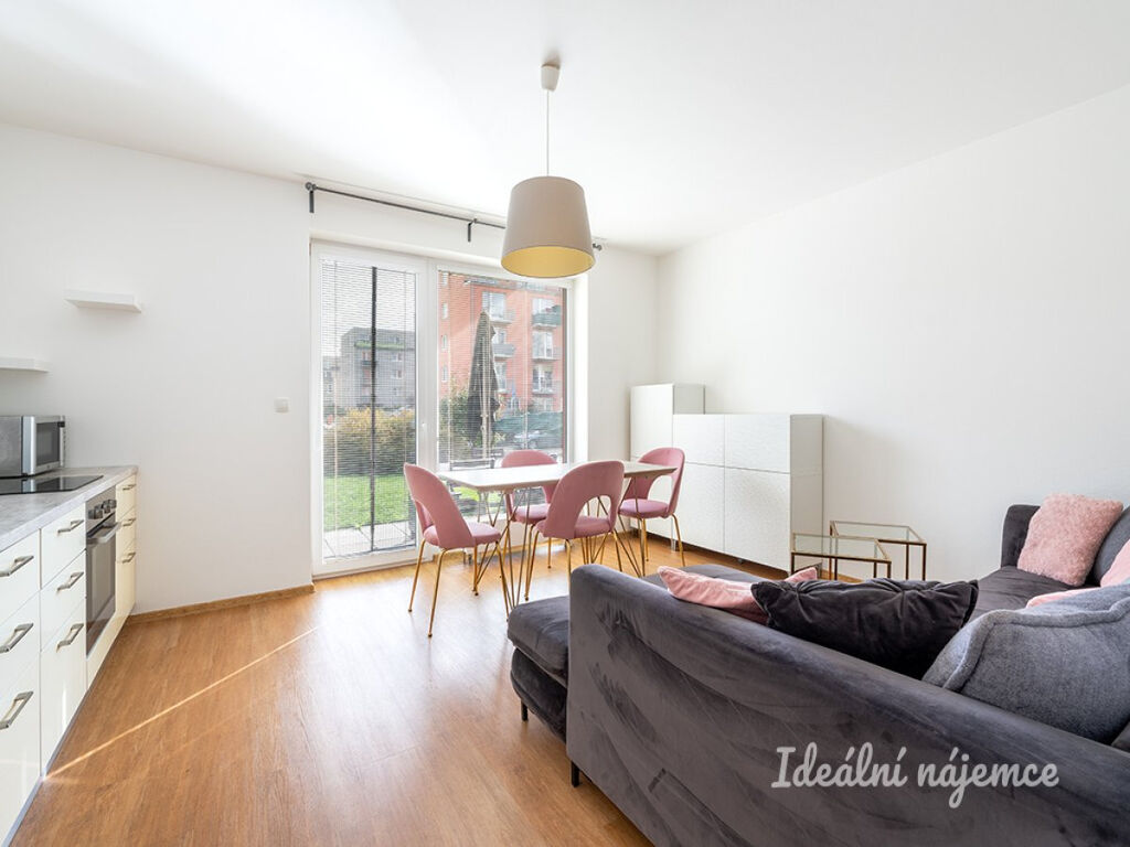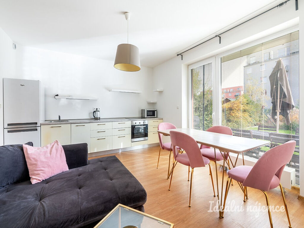 K dlouhododobému pronájmu nabízíme hezký plně zařízený přízemní byt 2+kk 44 m2 s 80 m2 předzahrádkou, sklepním úložným prostorem a podzemním parkovacím stáním v novostavbě v klidné části středočeské Hostivice.