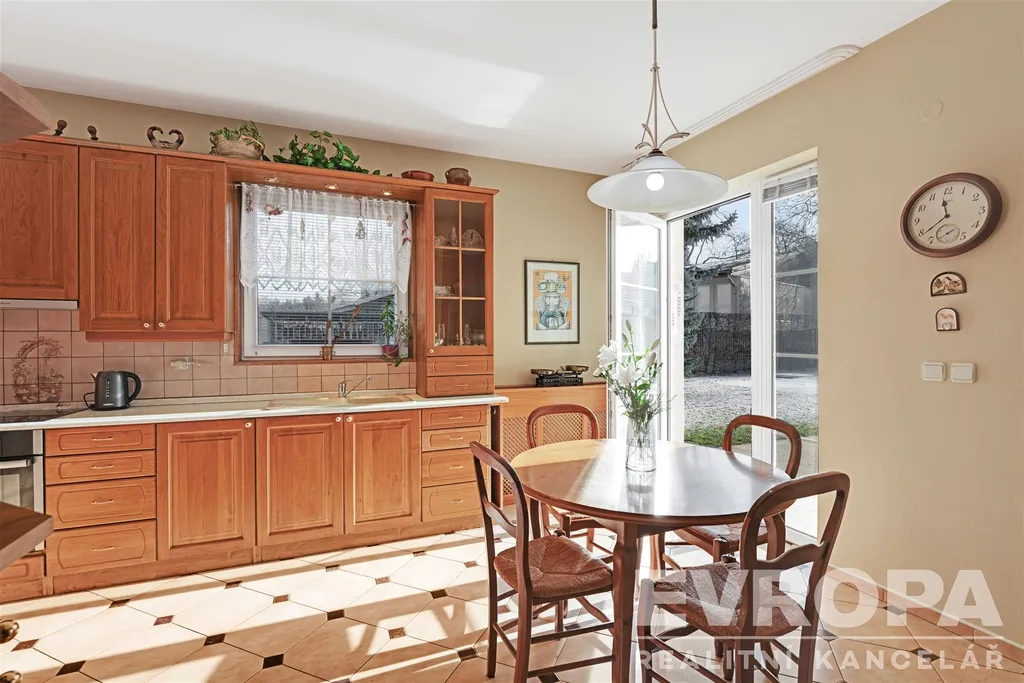 Oplocený pozemek, zabezpečovací systém, prostorná dvoj garáž s dálkovým ovládáním a soukromým vstupem do domu, bazén, zahradní domek, pergola s udírnou jsou pro tento dům samozřejmost.