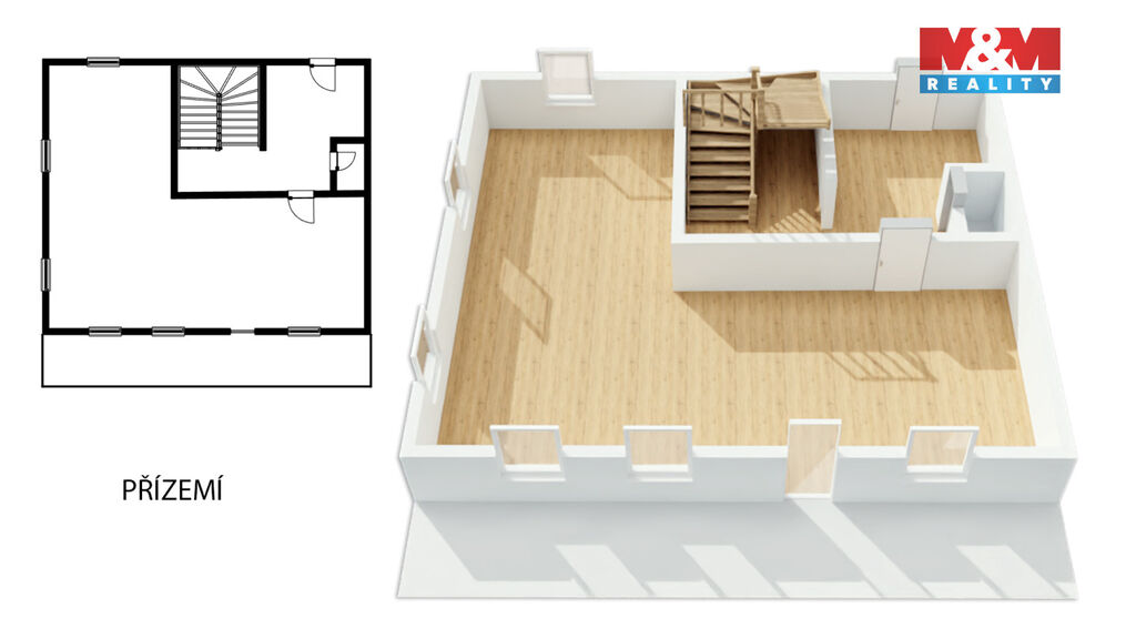 Tato útulná dřevostavba se pyšní 3 samostatnými pokoji a prostorným obývacím pokojem propojený s kuchyňským koutem.