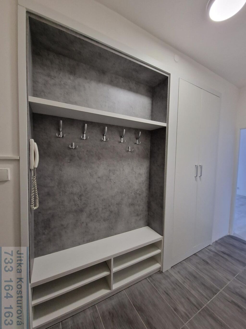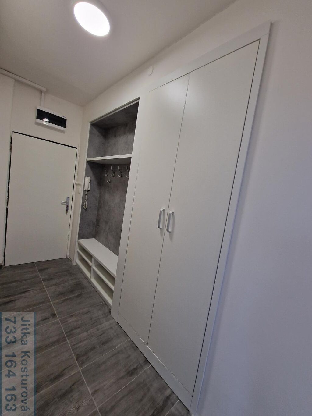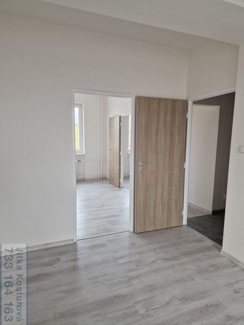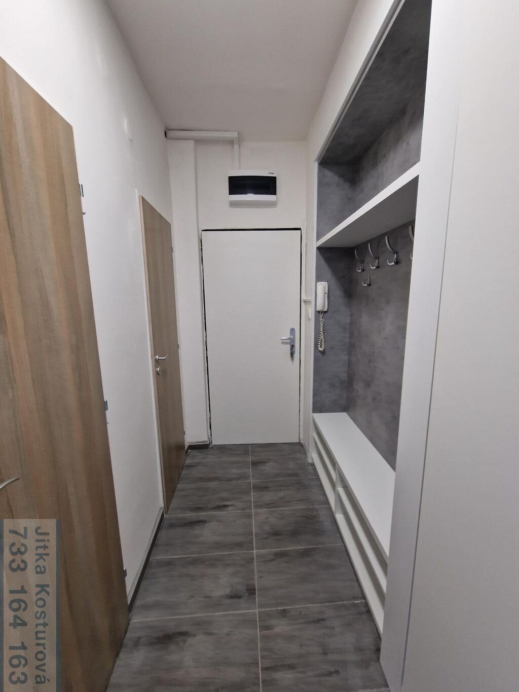 V bytě jsou plastová okna, nové podlahy, světla i dveře. Sestává ze vstupní chodby s věšákovou stěnou a vestavěnými skříněmi, koupelny, samostatného WC, dvou obytných pokojů a kuchyně. V obývacím pokoji je lodžie, koupelna disponuje umyvadlem, sprchovým koutem, zrcadlovou skříňkou a přípojkou na pračku. V kuchyni se nachází nová kuchyňská linka se spotřebiči - indukční varná deska, elektrická trouba, digestoř a je zde nachystaná přípojka na myčku a pračku.