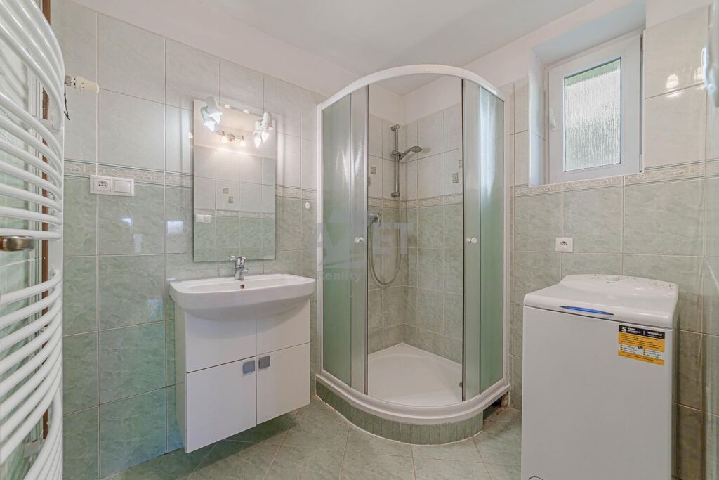 1.NP - zádveří, předsíň, schodiště do 2.NP, chodba do sklepa/garáže, samostatné WC Kombi, koupelna se sprchovým koutem, komora, obývací pokoj, ložnice, kuchyně, garáž (sklad)