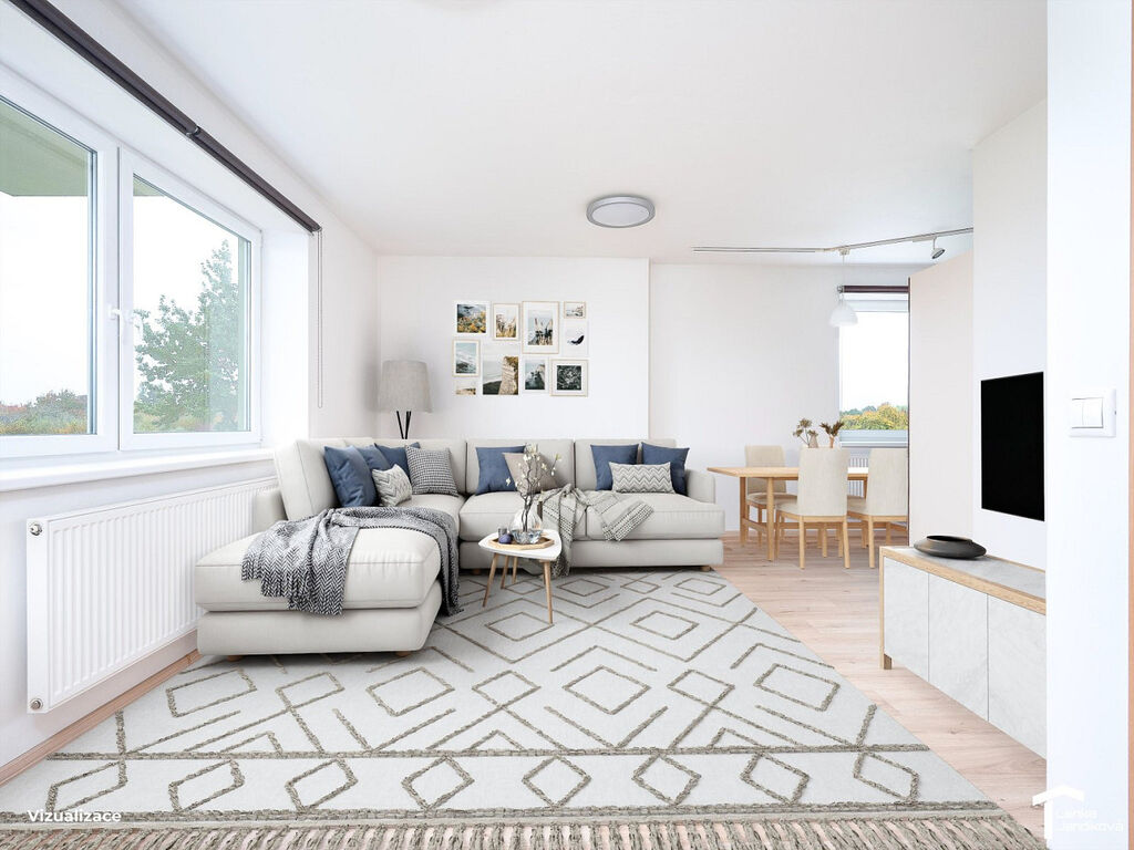 Byt je v tuto chvíli nezařízený a tak si dovoluji vložit dvě fotografie s vizualizací pro představu rozmístění nábytku.