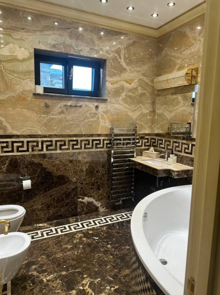 V obou koupelnách je podlahové vytápění, obklady i podlahy jsou z luxusního mramoru.