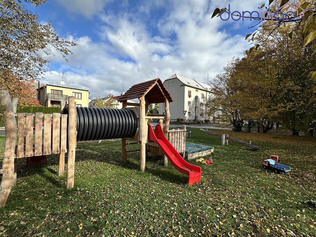 Za domem se nachází pozemek, který je možné využít například pro drobné zahradničení. Kousek za domem se nachází dětské hřiště, park s kávarnou i volnočasový park Cihelna.