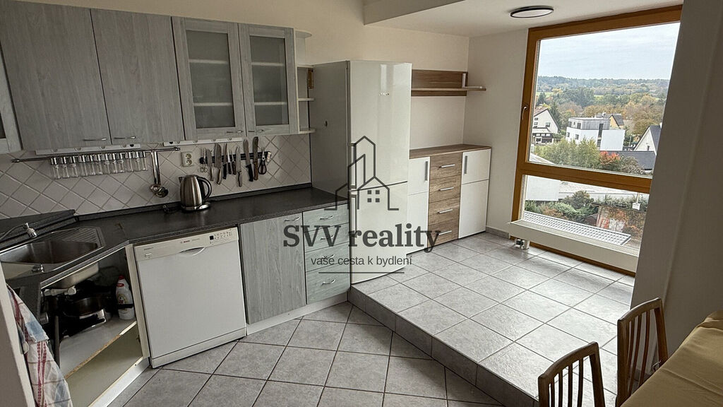 Nabízíme k pronájmu krásný a plně vybavený byt o dispozici 2+kk a podlahové ploše 50 m², s balkonem o výměře 3 m² a nádherným výhledem, který se nachází v 5. nadzemním podlaží moderního bytového domu s výtahem v klidné části Říčan, v ulici Melantrichova.