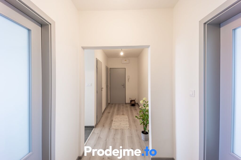 které byly udělané opravy vnitřních omítek, nové rozvody elektřiny, nové jádro, nové podlahy (kvalitní plovoucí podlaha + dlažba), nové vnitřní dveře s obložkami i nové bezpečnostní vstupní dveře. Na vás zůstává už jen výběr kuchyňské linky podle vašeho vkusu.