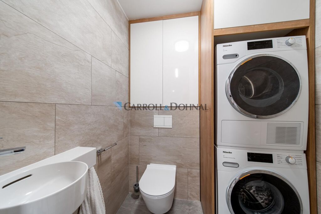 - druhá toaleta s umyvadlem má prostor pro pračku a sušičku Miele,