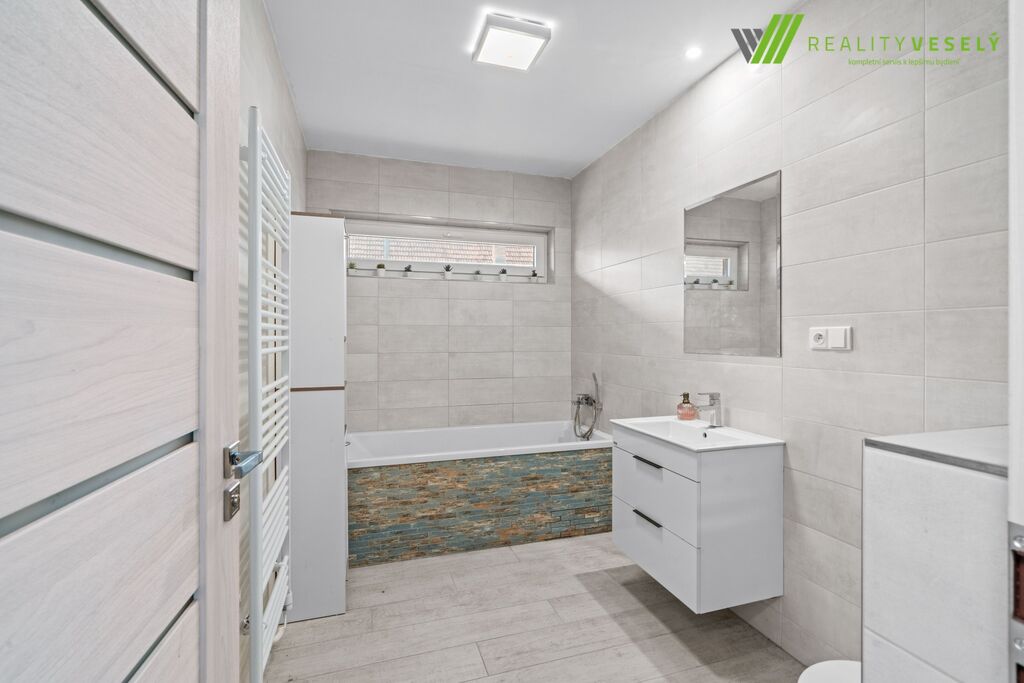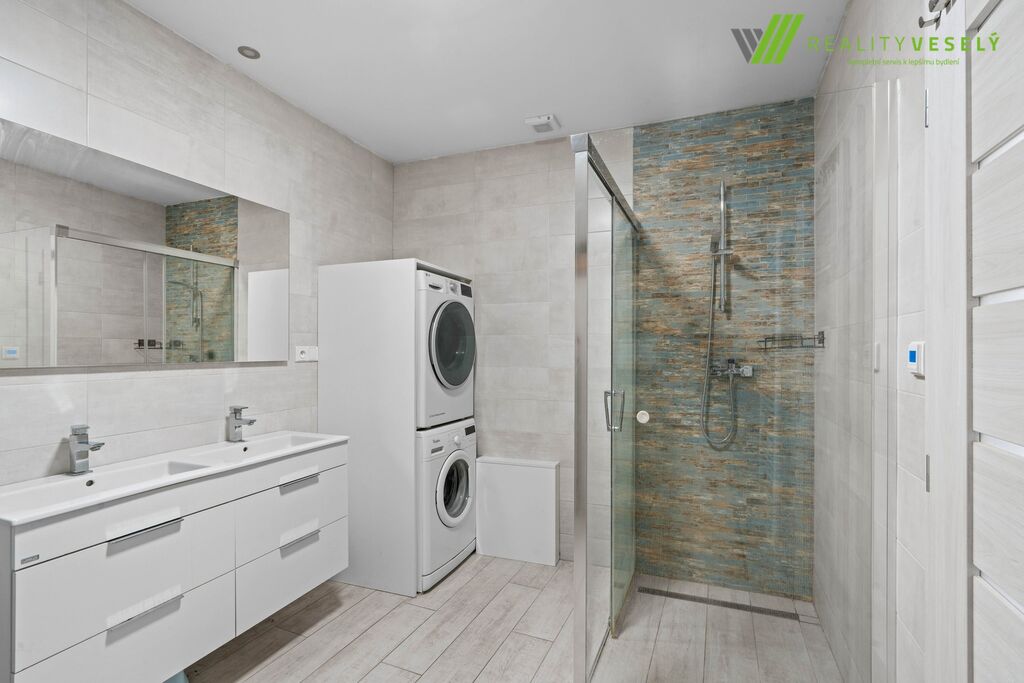 - dvě koupelny – jedna se sprchovým koutem a místem pro pračku i sušičku, druhá s vanou