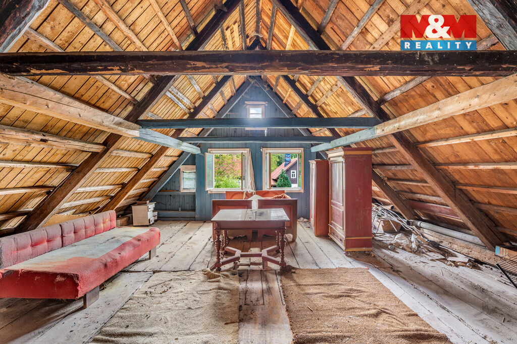 Exkluzivně nabízíme k prodeji krásný roubený dům v malebné části Antonínov v obci Josefův Důl, v srdci Jizerských hor. Tato tradiční dřevěná chalupa o dispozici 6+KK a užitné ploše cca 160 m² je ideální pro milovníky přírody a klidného prostředí. Nachází se na slunném jižním svahu s pozemkem o rozloze 4 452 m², který zajišťuje dostatek soukromí svou rozlohou a svojí vyvýšenou pozicí výhled do údolí. Nemovitost je v dobrém technickém stavu, případné úpravy závisí na záměru budoucího majitele. Na pozemku se nachází dřevěné stodoly s potenciálem pro skladování či další využití. Vytápění je řešeno krbovými kamny a elektrickými přímotopy. Dům je napojen na obecní vodovod a elektrickou síť, má však i vlastní studnu. K dispozici je suché WC, kanalizace zatím není zavedena. Tato nemovitost nabízí výjimečné spojení klidu, přírody a dostupnosti služeb v okolí. Nezmeškejte jedinečnou příležitost stát se majitelem této kouzelné chalupy.