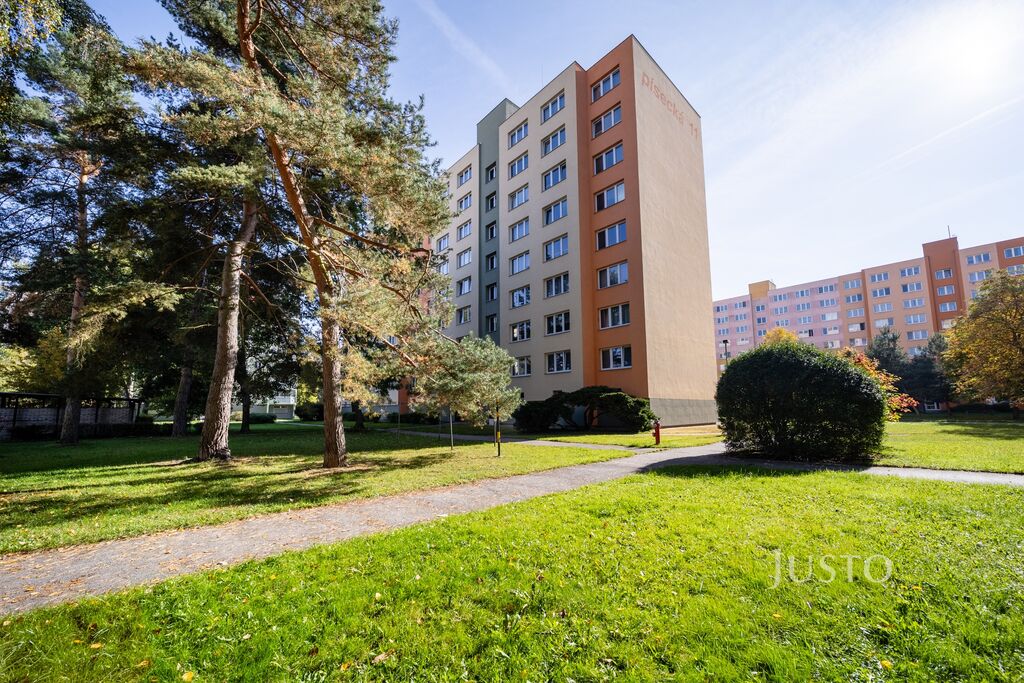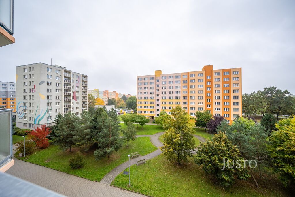 K bytu náleží sklepní kóje, dům má výtah a udržované společné prostory. Z lodžie je příjemný výhled do zeleně.