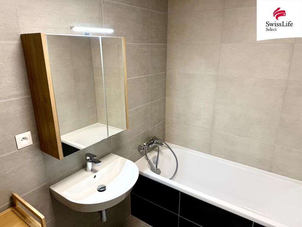Byt je pronajímán s kuchyňskou linkou, která je vybavená myčkou nádobí, troubou, varnou deskou a digestoří. Dále je v předsíni šatní skříň a v koupelně je skříňka se zrcadlem a odkládací skříňka. V bytě je také instalováno osvětlení a na oknech jsou připraveny kolejnice pro zastínění oken.